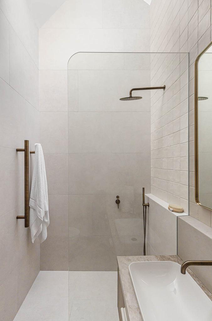 When choosing your fixtures, consider coastal colouring. Tapware in warm brushed nickel or brushed brass hints to the warm tones of sandy shores. Choose these or similar colours for your hardware and bathroom accessories to brighten the space and diffuse light.