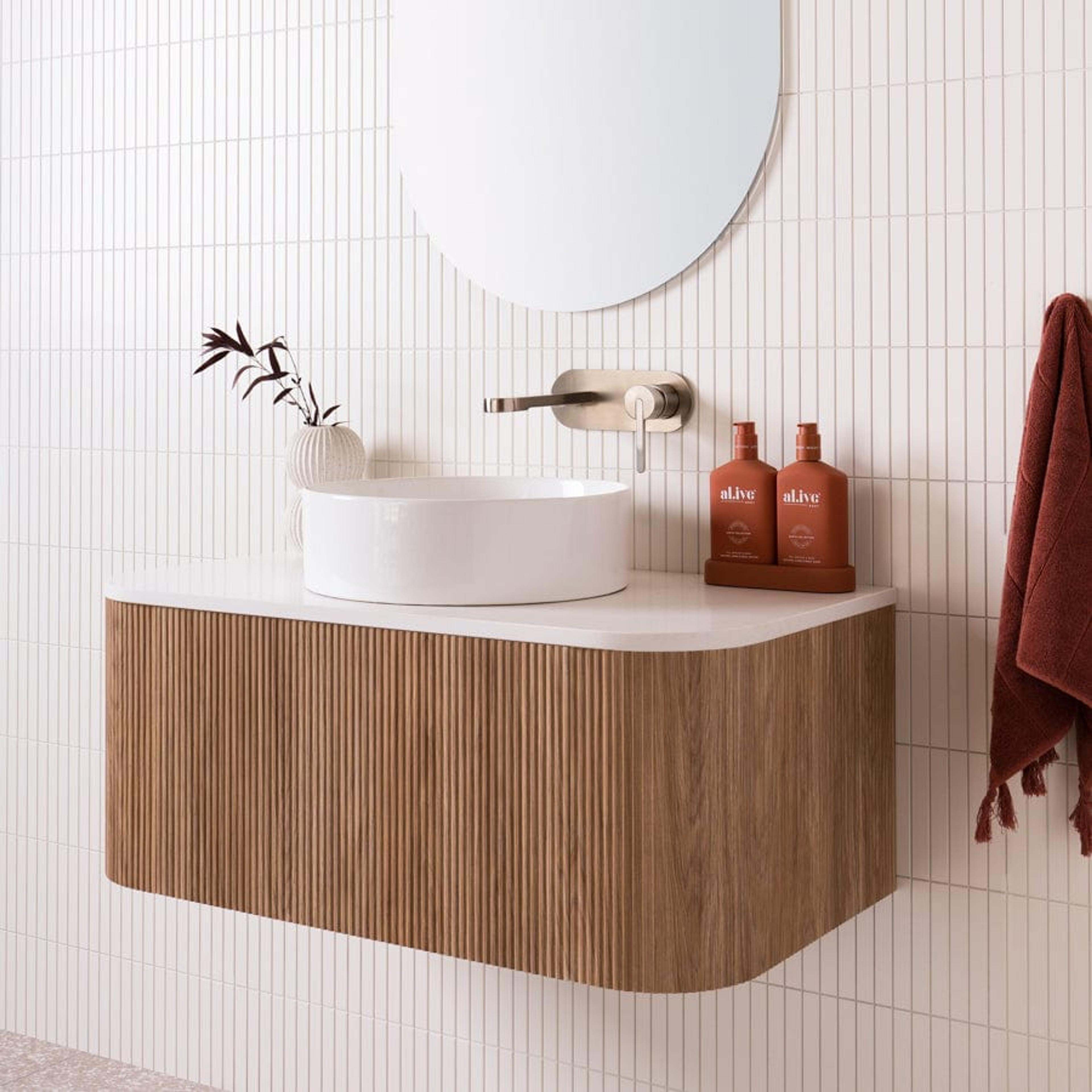 The need for storage depends on who and how you’re using the bathroom. A large single or a double vanity size might be best if you’re someone who likes to hide away your toiletries. If it’s used by more than one person, some extra bench space and drawers can help keep things organised.