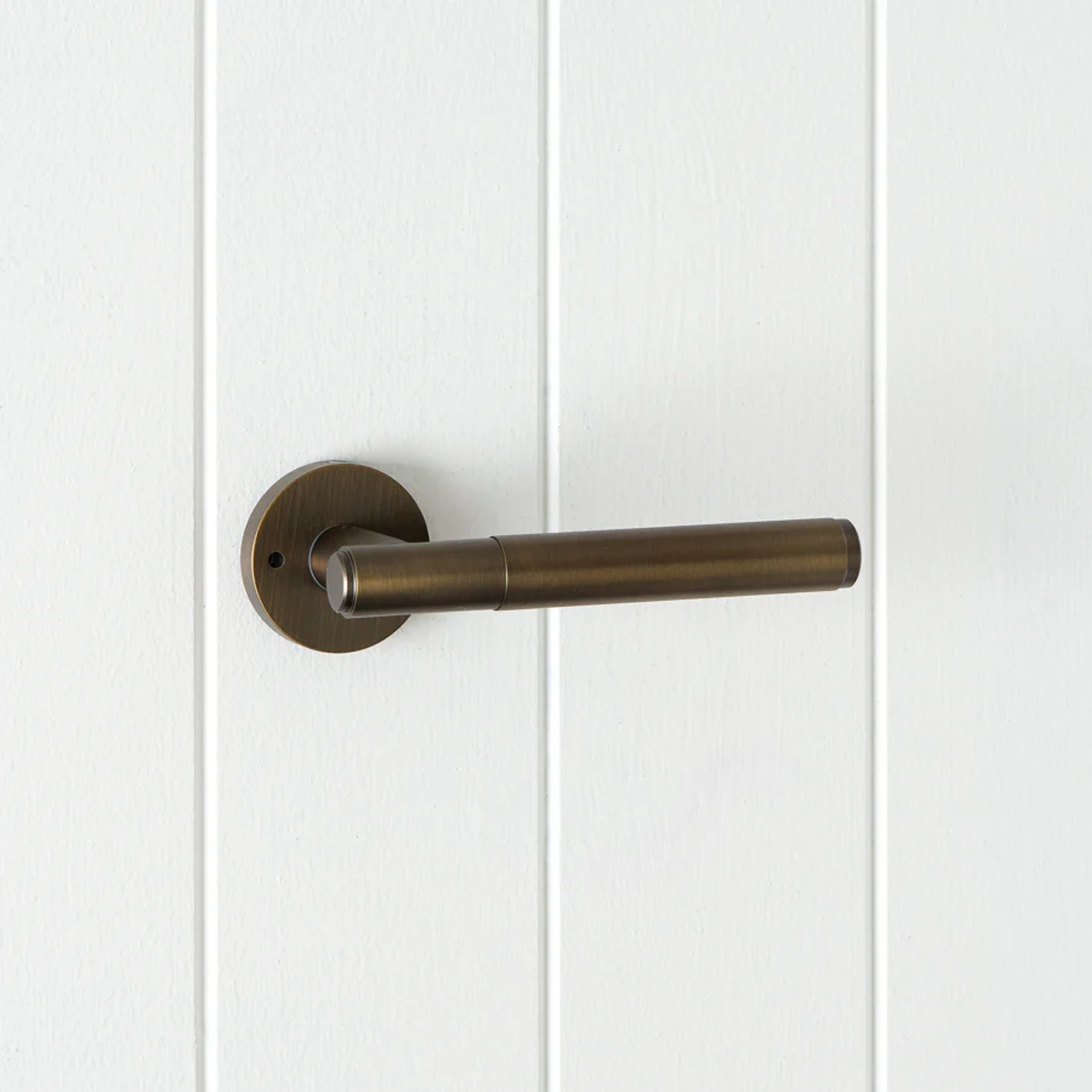 Left to right: Sydney Door Handle Antique Brass, Melbourne Door Handle Antique Brass