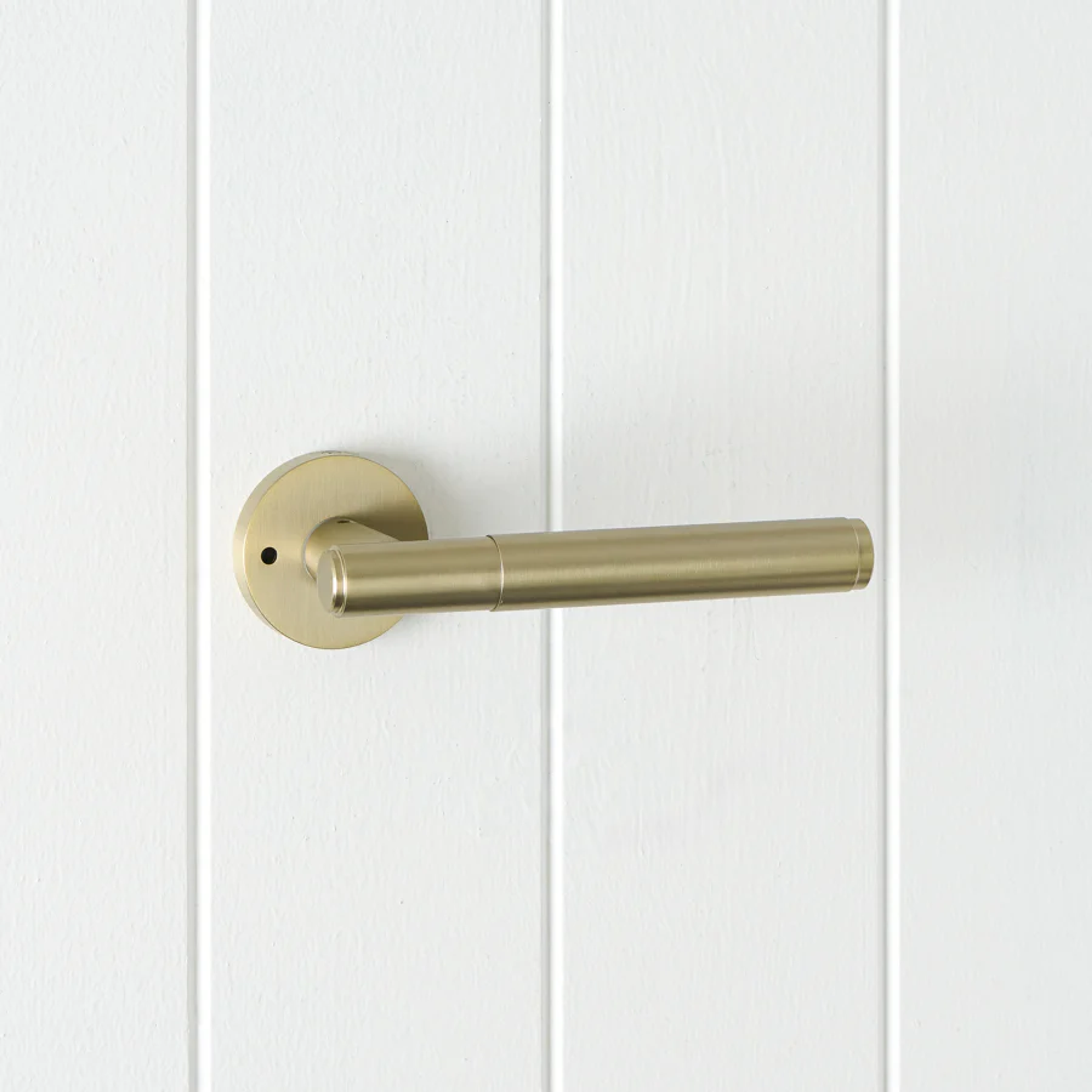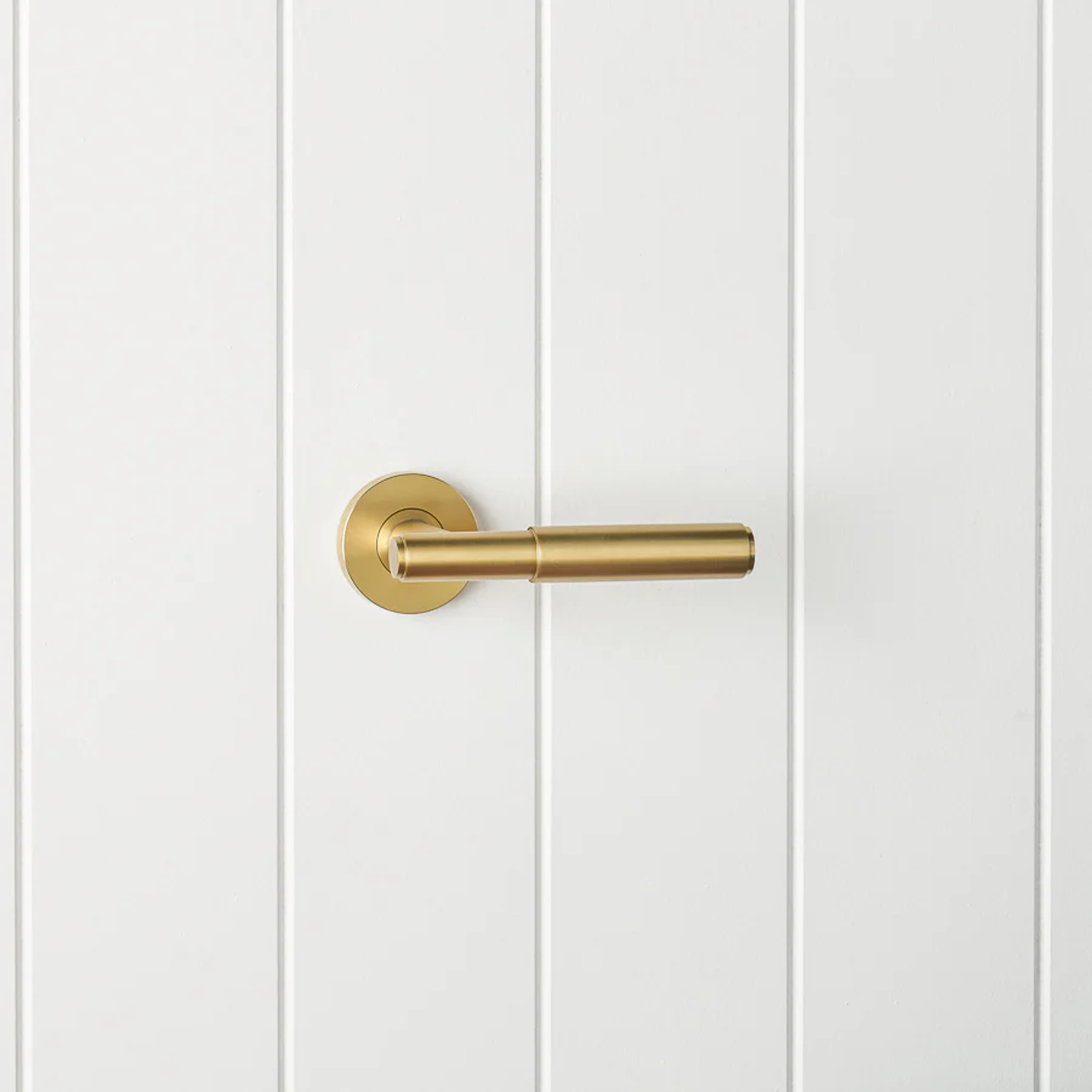 Left to right: Sydney Door Handle Brushed Brass, Melbourne Door Handle Brushed Brass