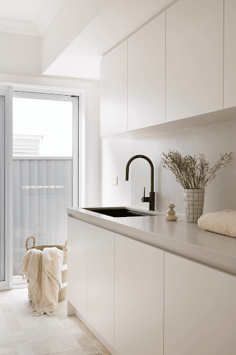 Your sink works harder than almost any other fixture in your home, so it’s important that it works for you and your laundry routine. If an existing sink is structurally sound but looking a little worse for wear, consider refinishing it, or swap it out completely for a deep, functional option that handles everything from soaking stains to giving your dog a bath. A fresh sink instantly makes the whole space feel cleaner, especially when paired with updated tapware and surrounding improvements.