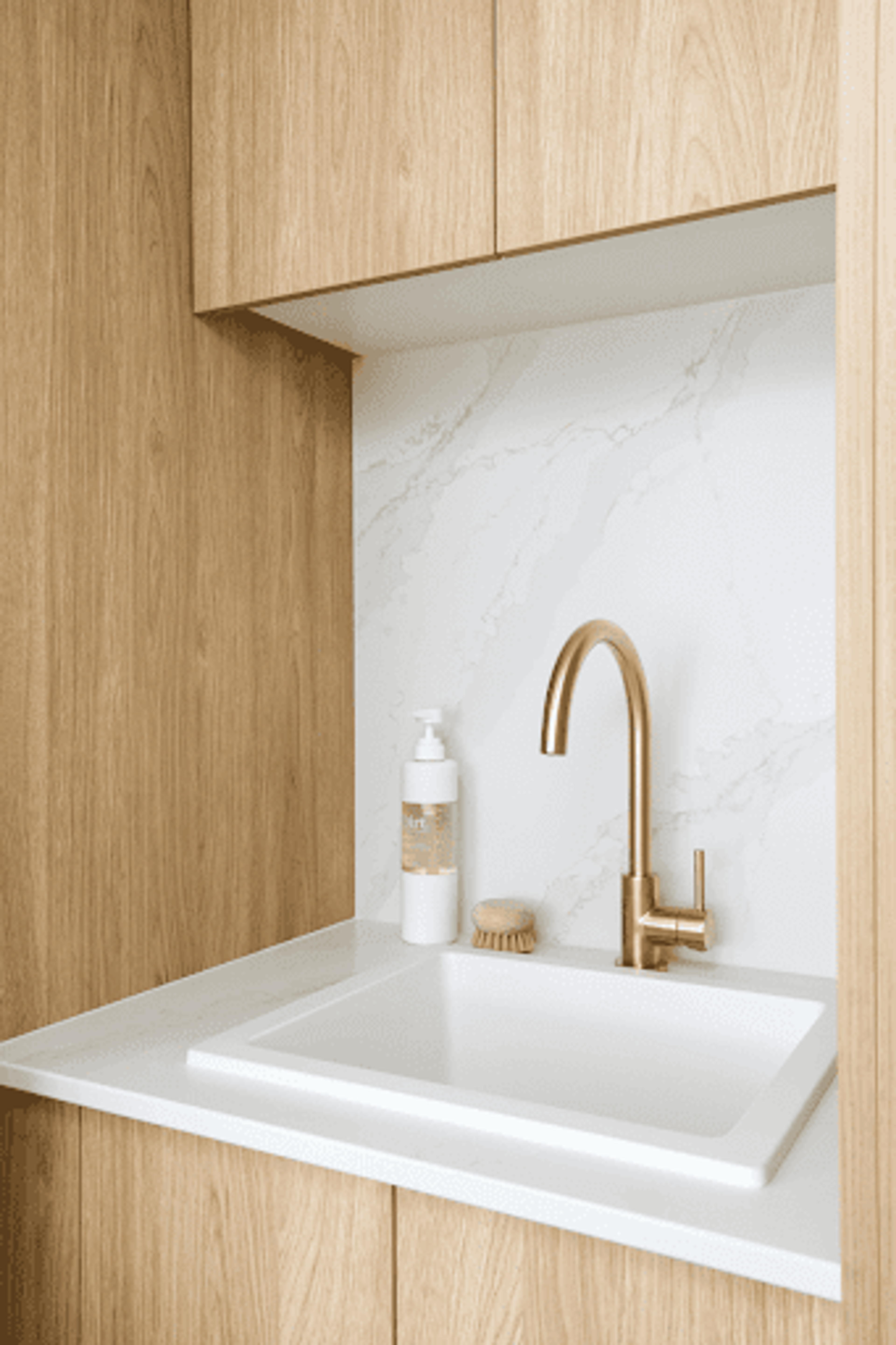Laundry renovation ideas don't get much simpler than swapping out old tapware for something fresh and functional. A modern pull-out tap makes filling buckets and washing oversized items so much easier, while instantly updating your space's look. Choose finishes that coordinate with your existing hardware, or go bold with matte black or brushed brass for a more considered look. Quality laundry tapware handles the daily demands of washing, soaking, and cleaning, so invest in something that looks good and works even better.