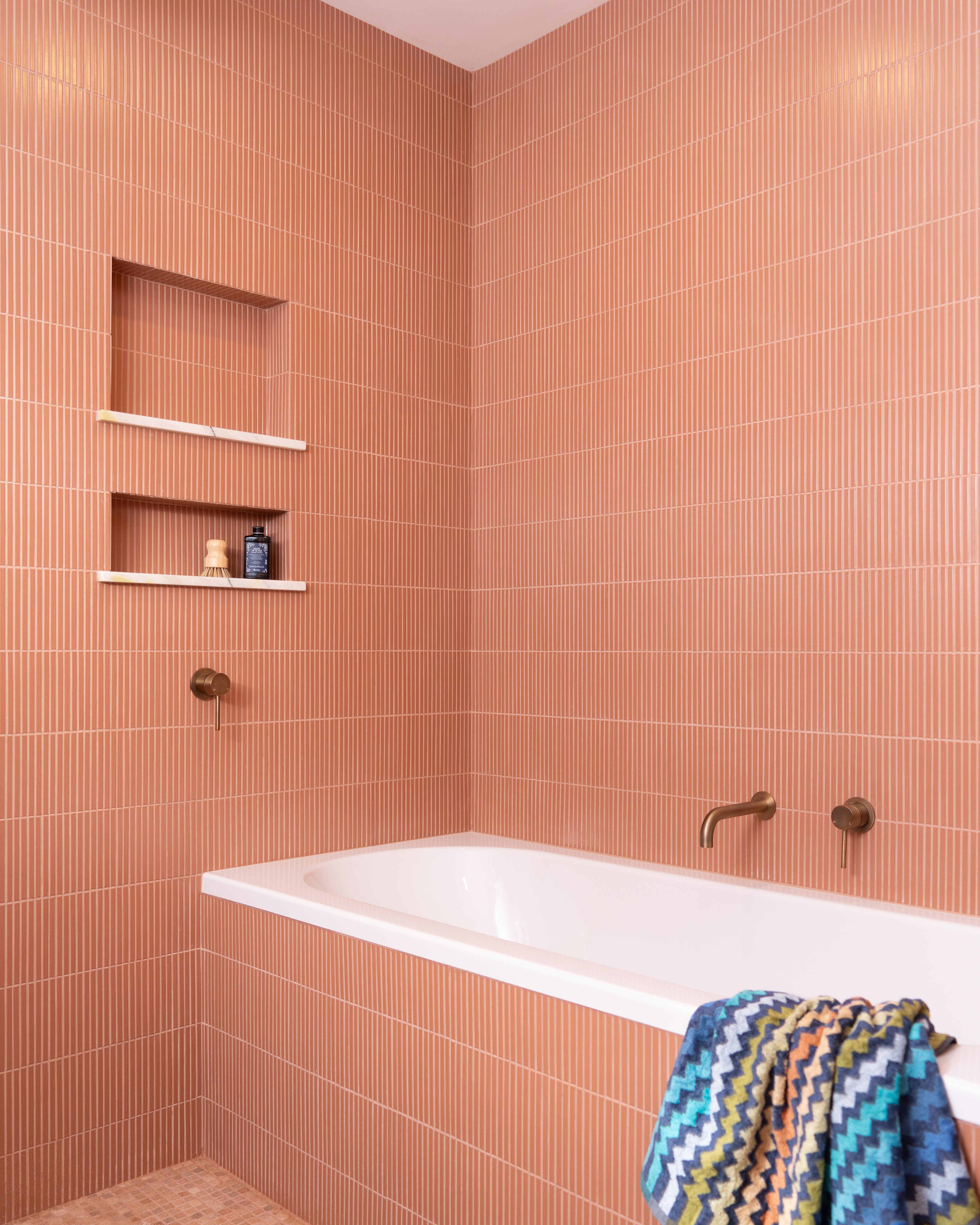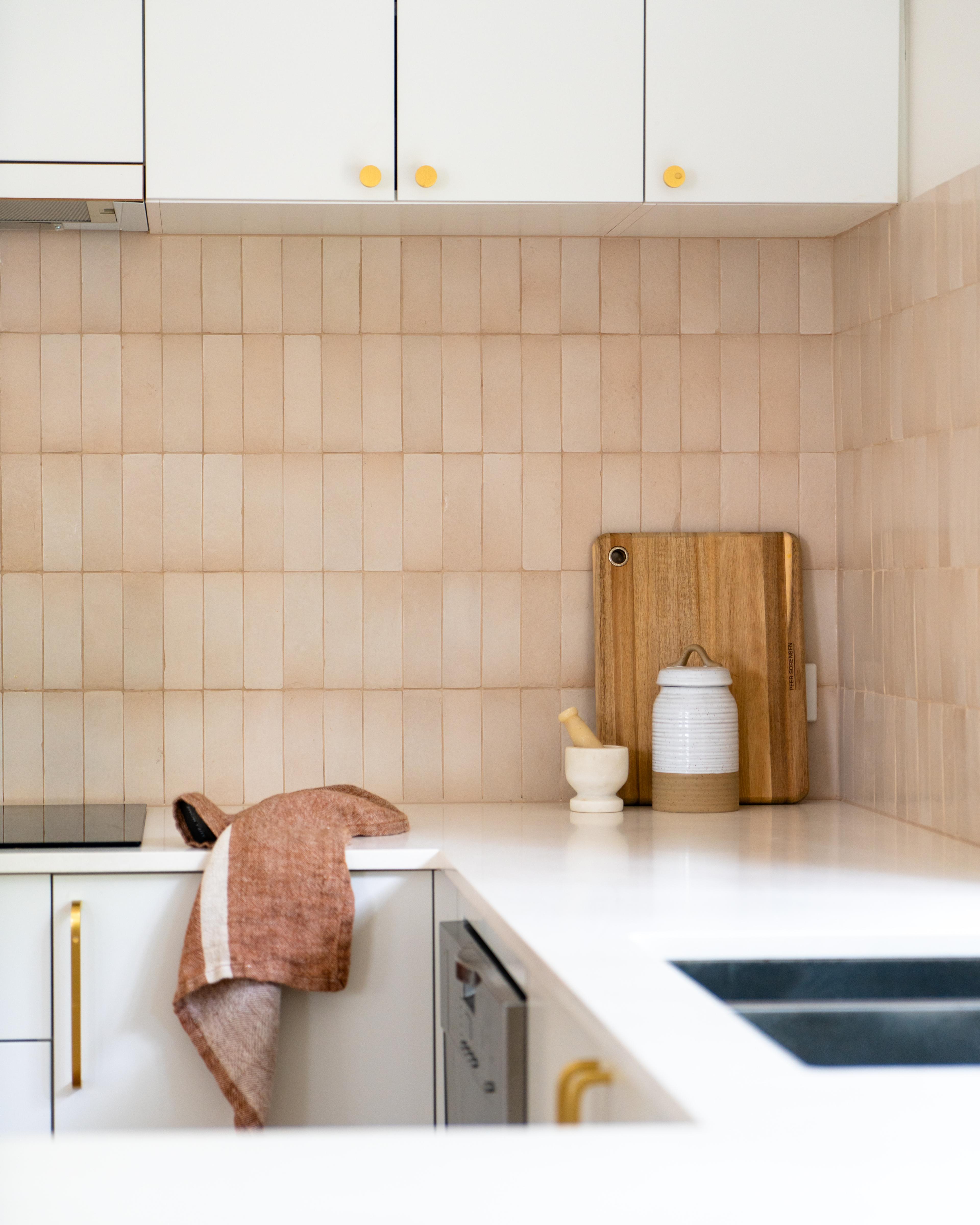 Pink doesn’t have to be loud. Dusty or muted pinks can make your home feel soft and cosy, especially when paired with natural materials like timber and rattan. Use it as an interesting splashback colour or on the walls with paint.