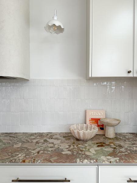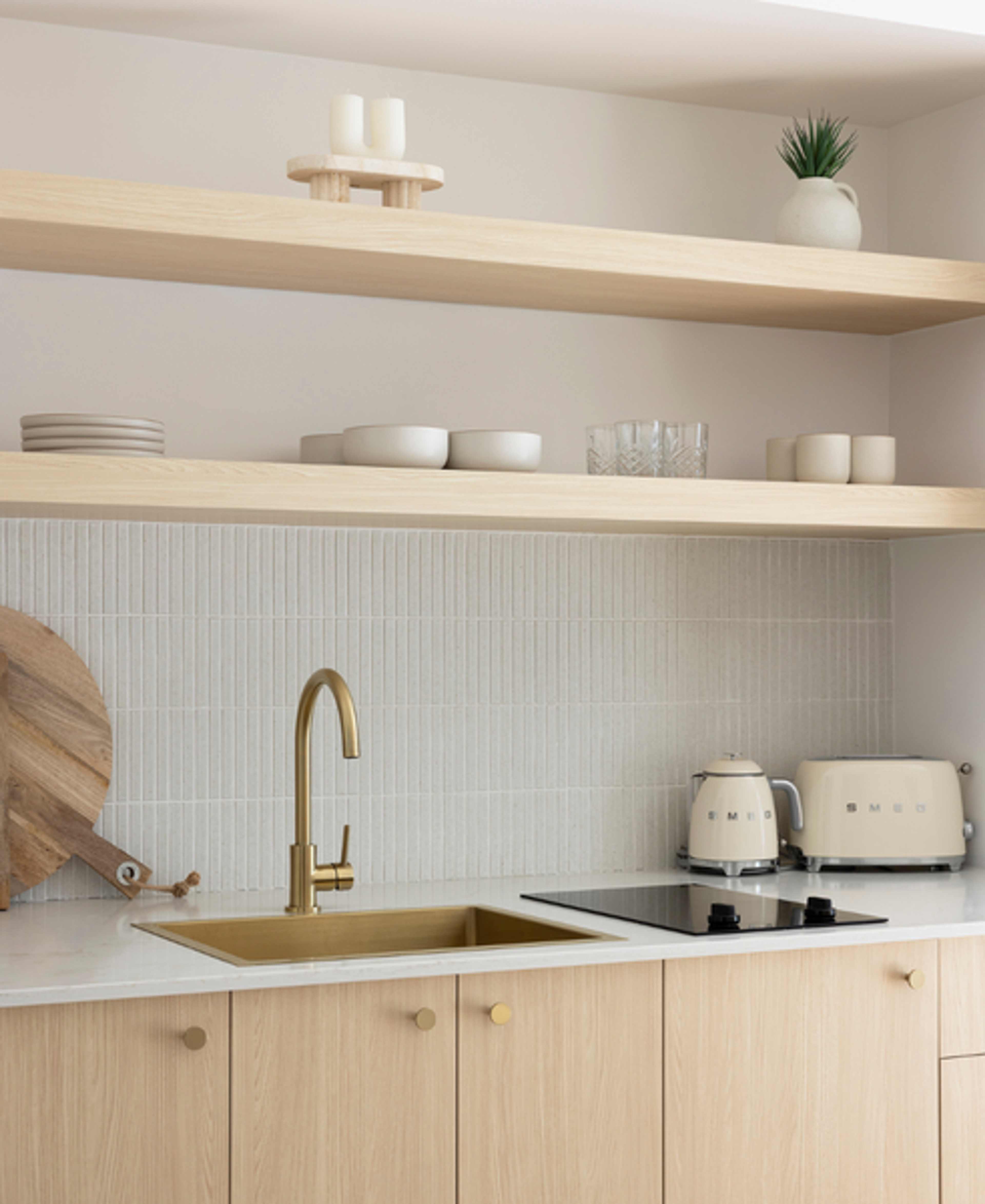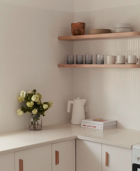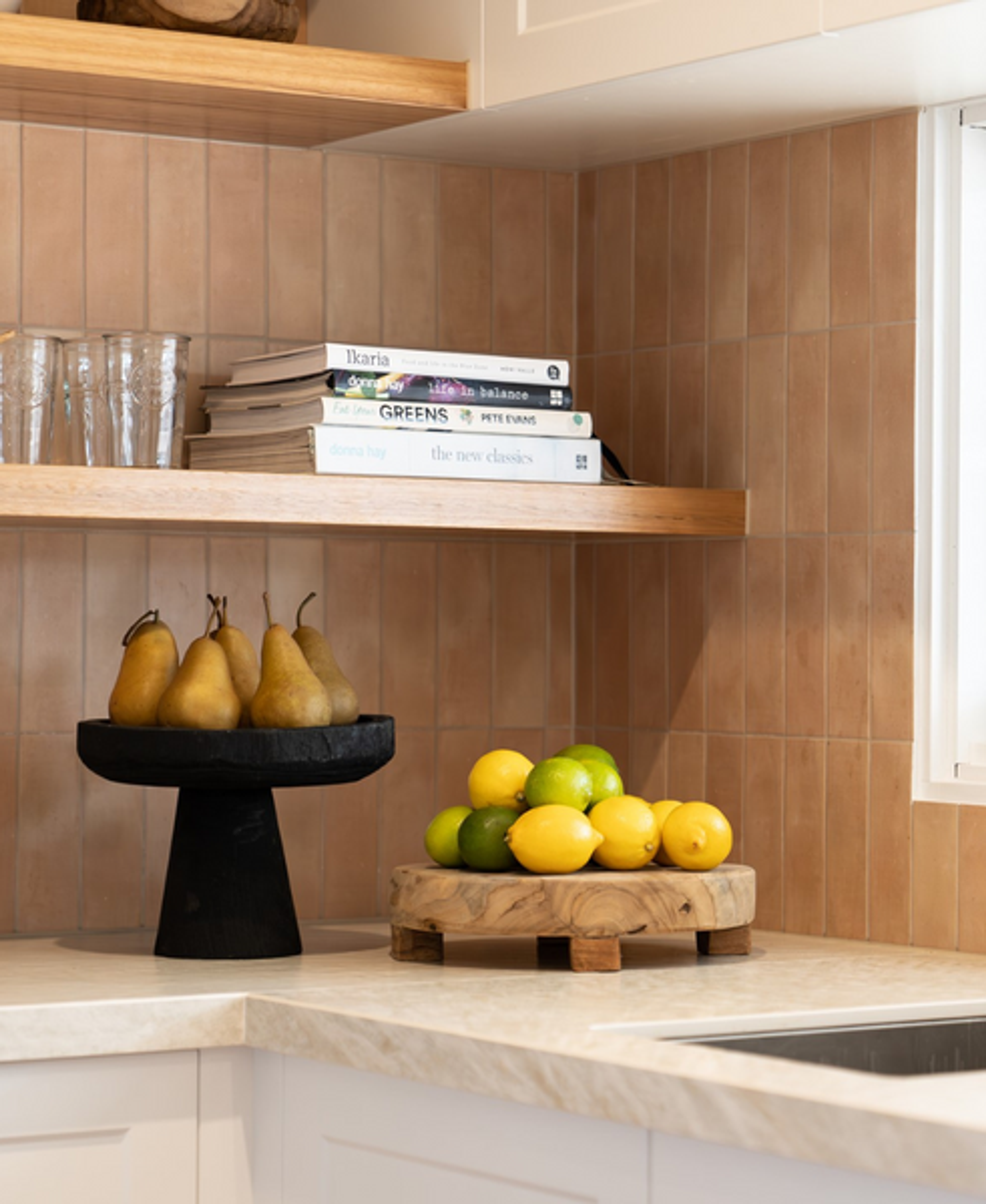 Leaning a few wooden or marble cutting boards against your splashback creates depth and warmth in your kitchen styling. We recommend mixing different materials and sizes for visual interest. When not in use for food prep, these boards double as the perfect kitchen bench styling backdrop or as serving platters when hosting guests.