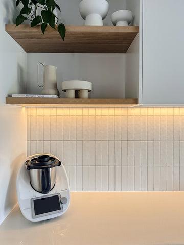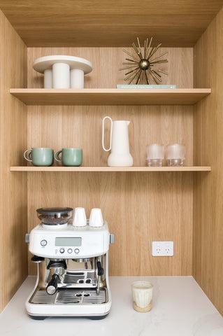 If you want to add a pop of colour, make a statement with vases, decorative bowls, tea towels or even small appliances (think Smeg toasters). To keep the design timeless, pick a muted shade in your favourite colour.