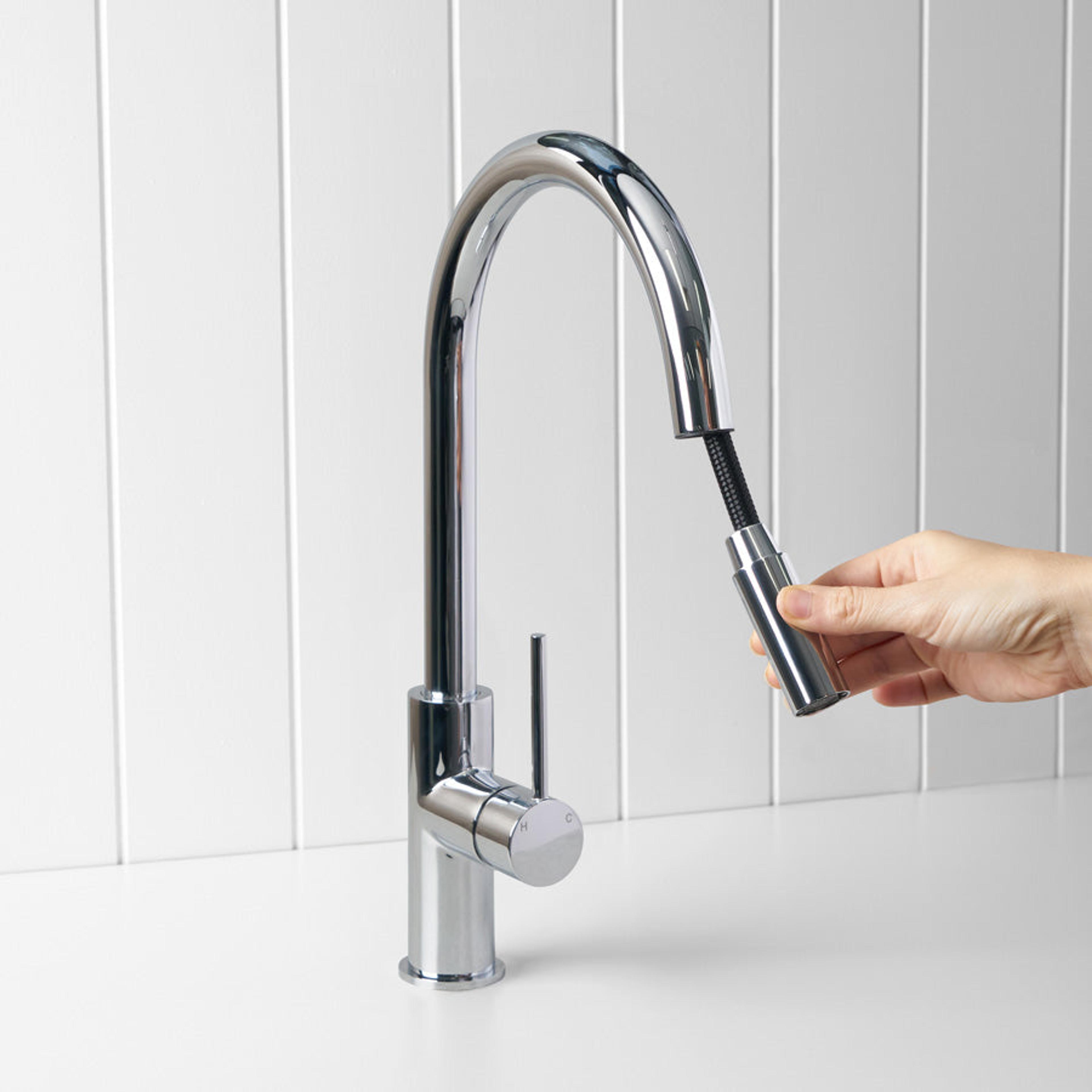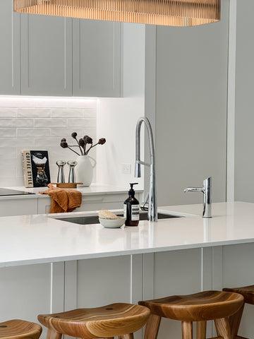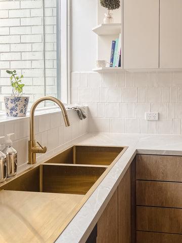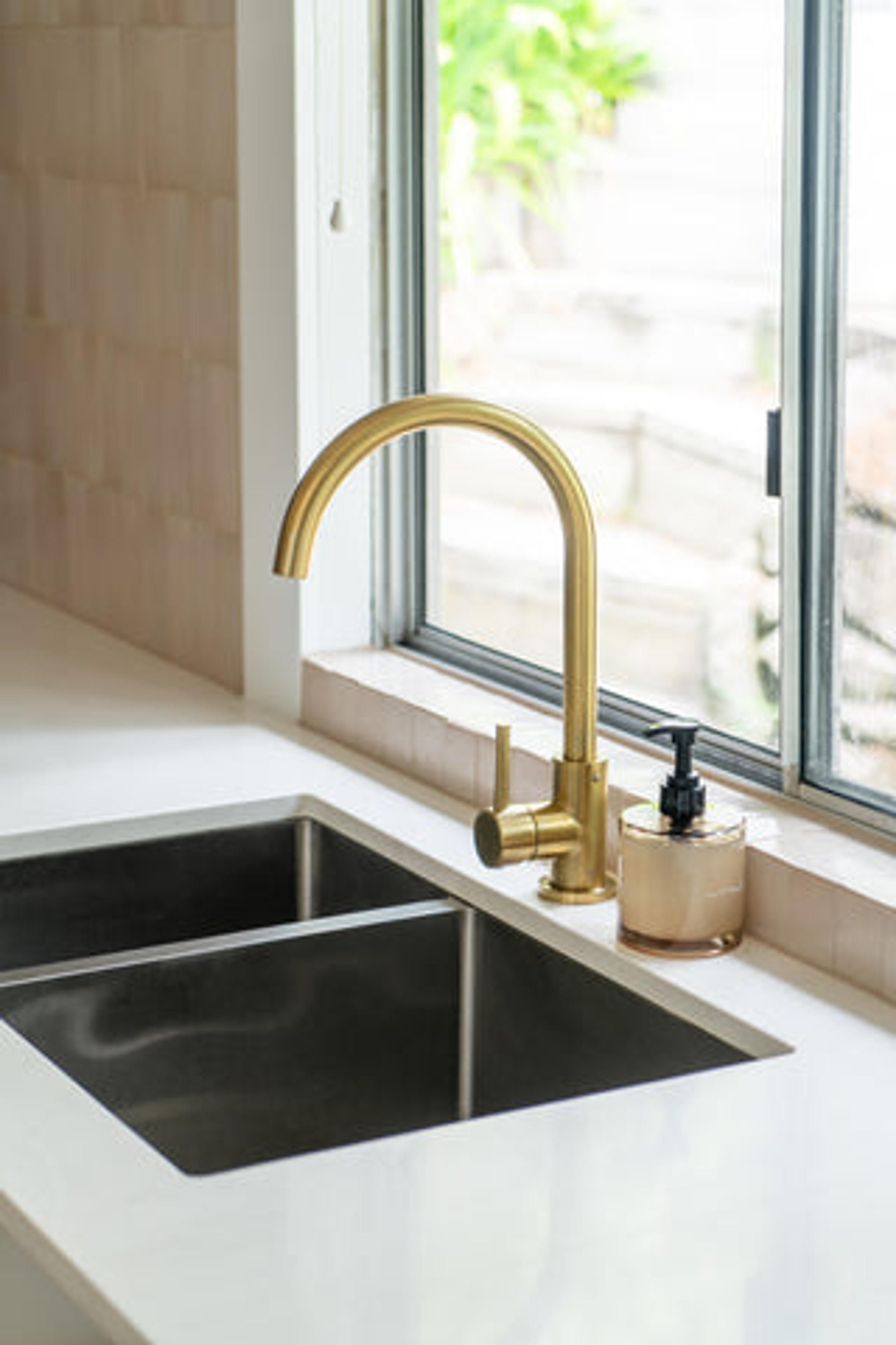 Brushed brass and nickel are great tapware colour options for those who prefer a warm palette. If you prefer cool-toned and slick kitchen tapware, choose finishes like matte black, chrome and gunmetal.