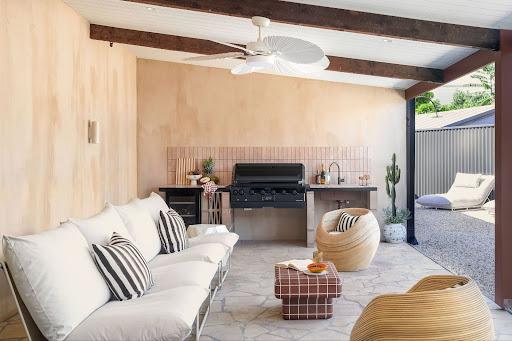 Resorts blur the line between indoors and out to create a sense of ease and flow. Start by opening up sightlines - can you create a view from your kitchen to greenery? Matching flooring or adding some plants can help tie your spaces together and keep things feeling seamless. Even a small patio can work as an extra room, add a table and chairs and it becomes a quiet spot for your morning coffee, or a place to enjoy a drink in the sun later in the day. A few simple changes can shift how you use the space.