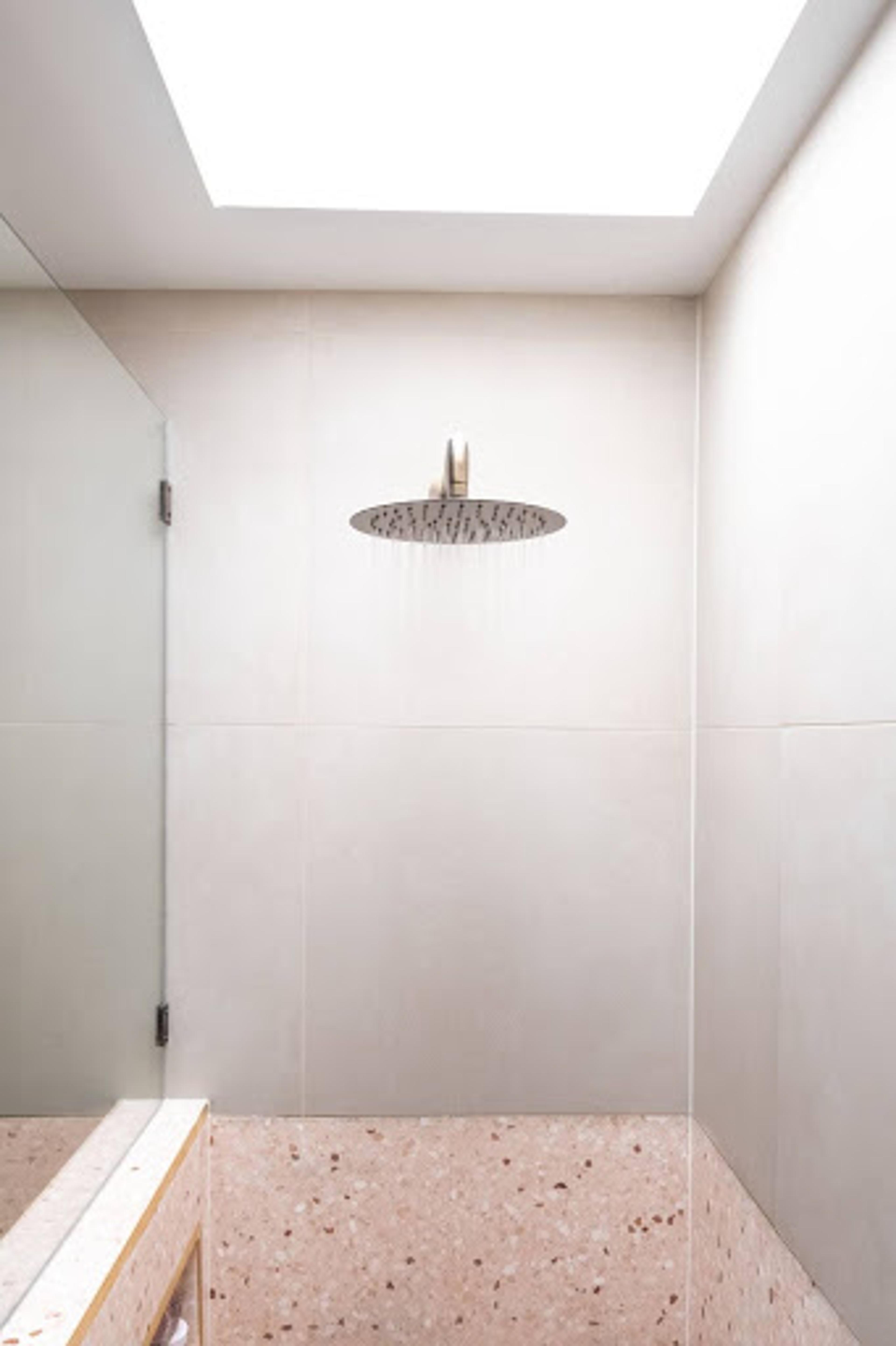 At just 2.2 x 2.5 metres, the room felt tight and pokey. Sarita brought in designer Kate from Stylosaurus to help reimagine every inch. The brief was fun, practical and with a slight feminine lean. The old double shower took up too much space, so removing it instantly opened up the room. Even with a budget just over 20k, Sarita managed to stay on track, including the designer, builder and a new skylight.