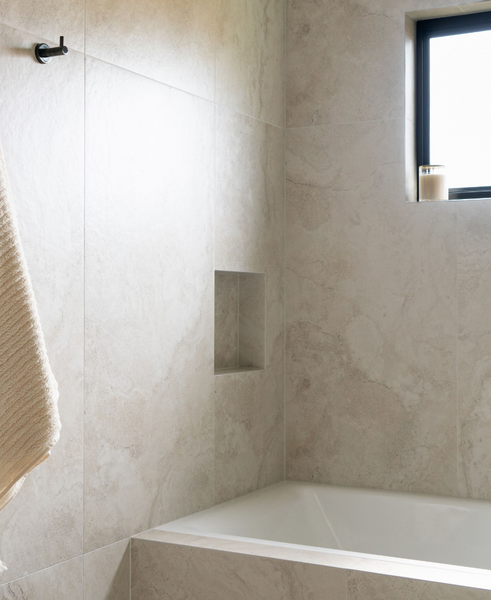 These are an absolute game-changer when designing your shower over bath space. Not only do they provide a tidy spot to stash all your daily essentials like soap, shampoo, and body wash, but they also work wonders for keeping things neat and organized. By adding them into the design, you get rid of the clutter from the floor and say goodbye to those over-the-door shower caddies that might not exactly scream "style."