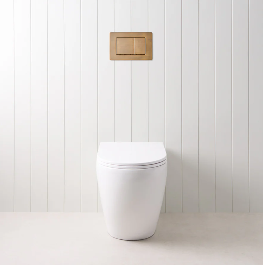 - Finish-specific flush plates: Many in-wall cistern systems allow you to select a flush plate finish, such as Antique Brass or Brushed Brass, to suit your bathroom’s style.