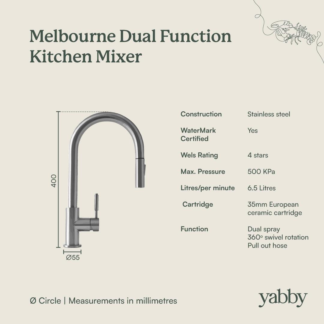 The Melbourne Dual Function Kitchen Mixer in Brushed Brass is built for real-life kitchens with style to match. Its pull-out hose and two spray options make rinsing and cleaning simple, while the brushed finish hides marks and fingerprints with ease. Reliable and easy to use.
