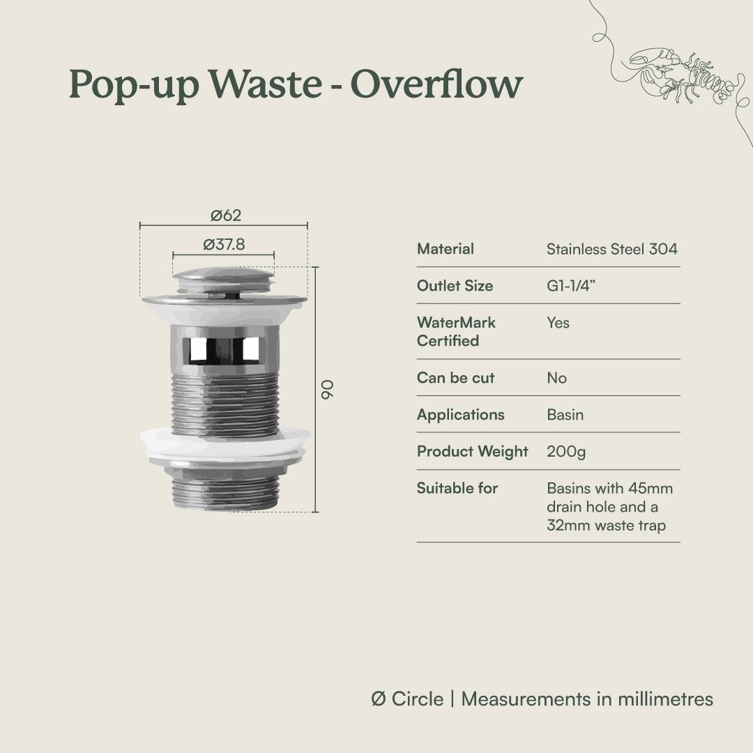 The Pop Up Waste with Overflow in Brushed Brass gives you a warm look with practical features built in. The overflow opening works with compatible basins to reduce the chance of overfilling, handy in busy homes. This brushed brass pop up waste with overflow keeps your sink looking tidy and coordinated with brass mixers.