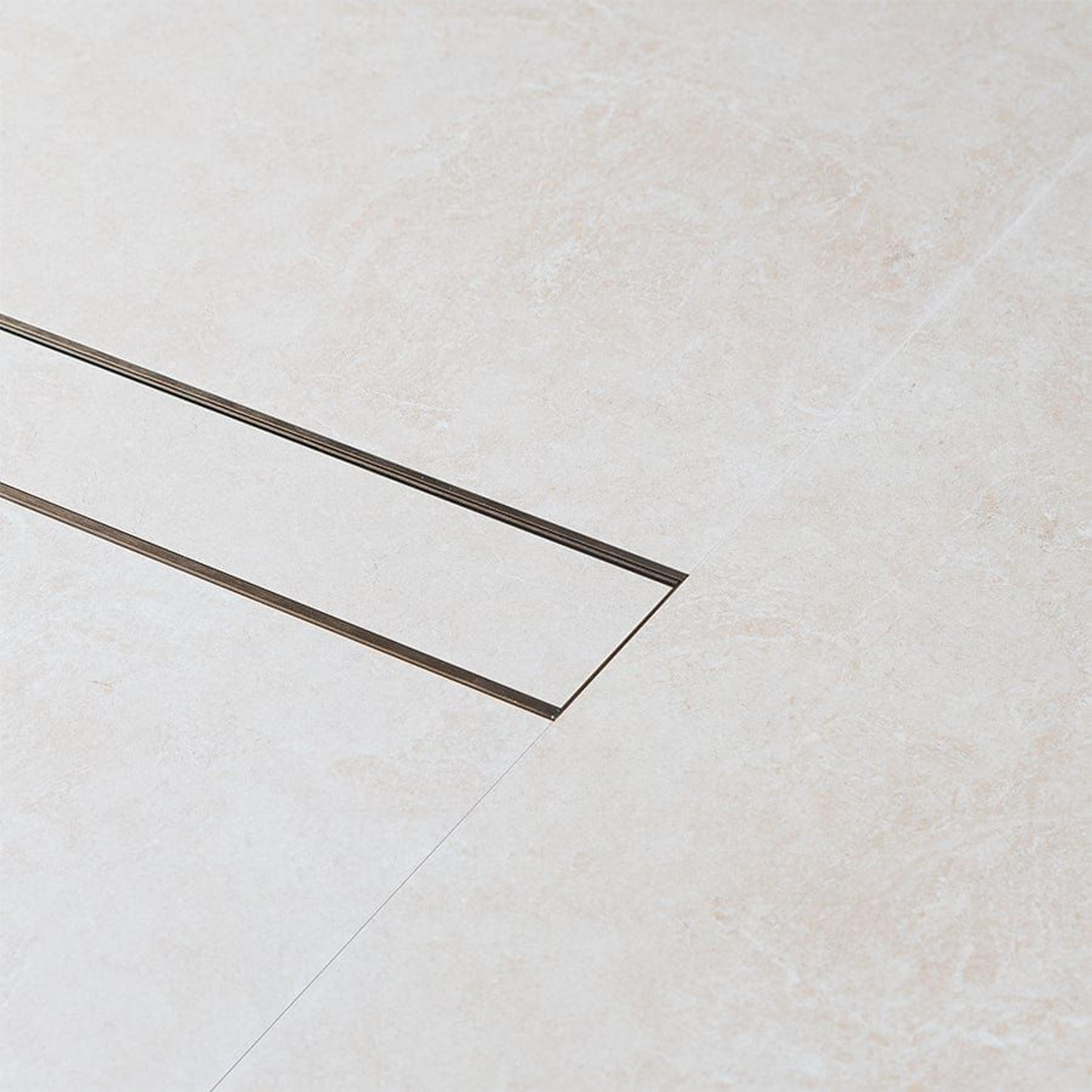 Aluminium Tile Insert Strip Drain - Cut to size - 2M Antique Brass. Create a seamless, modern finish in your bathroom or wet area with this 2-metre Aluminium Floor Drain. Designed to sit flush with your floor tiles, this slimline strip drain provides efficient water flow while maintaining a clean, minimalist appearance.