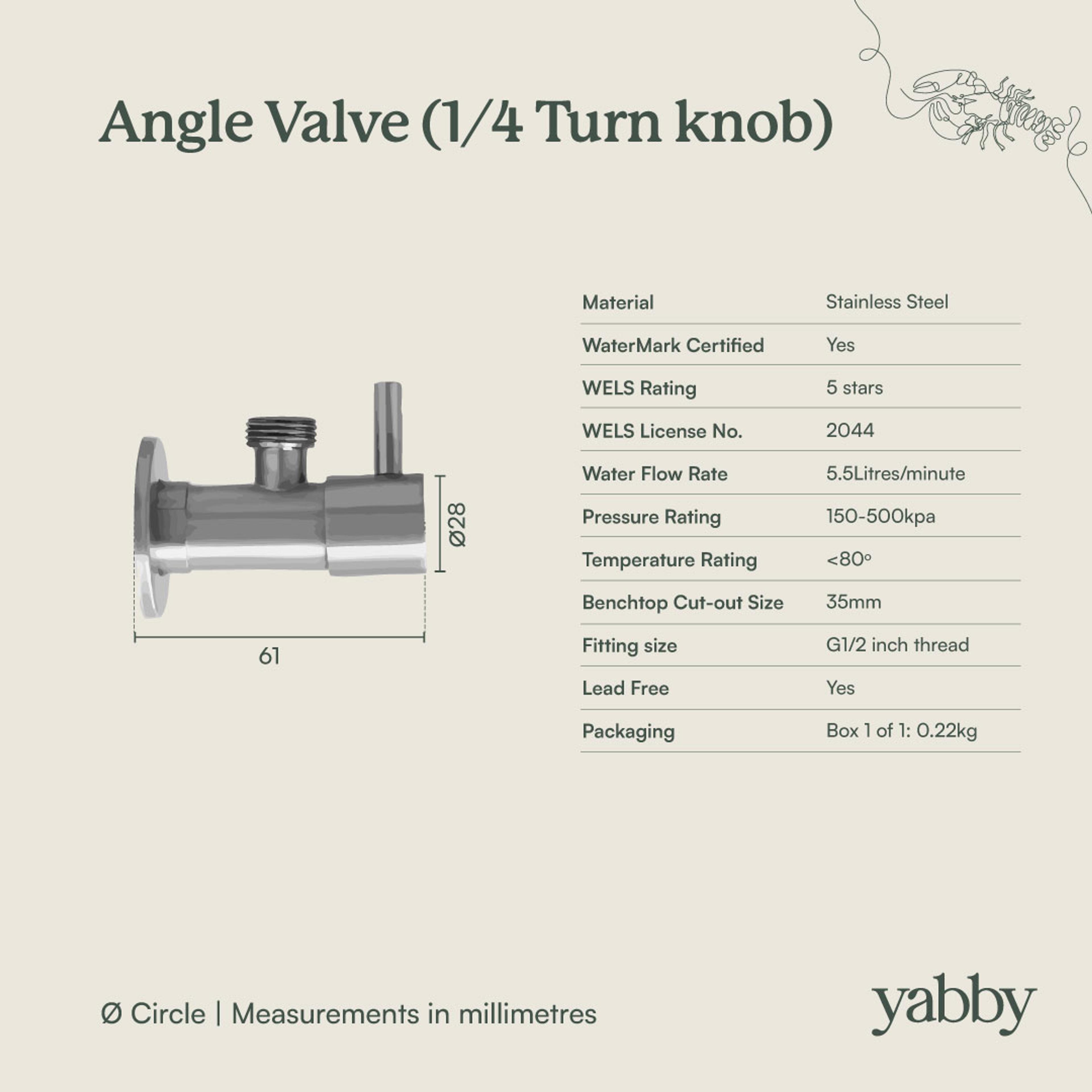 The 1/4 Turn Angle Valve in Antique Brass offers easy water flow control and is designed for horizontal connections where hot or cold water lines pass through a wall. With its straightforward installation and durable build, this valve is a reliable, affordable choice.