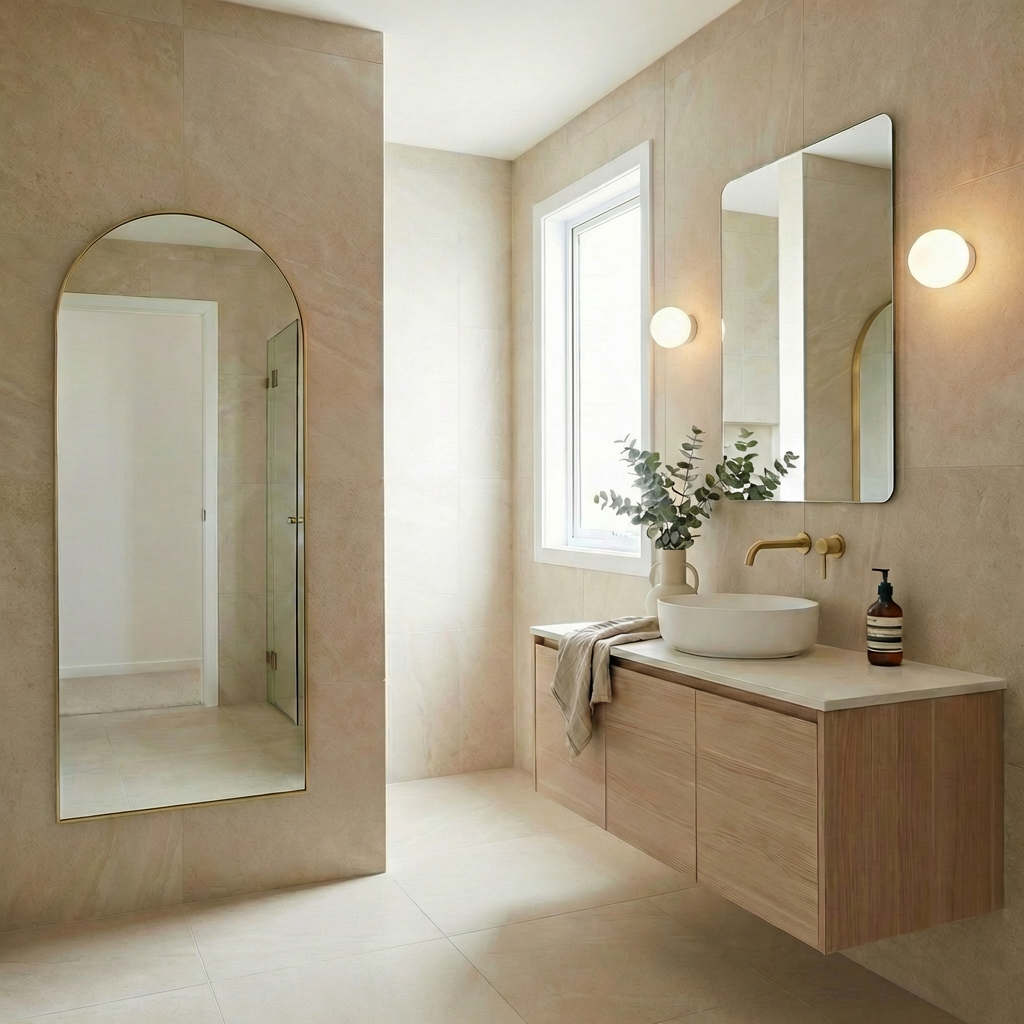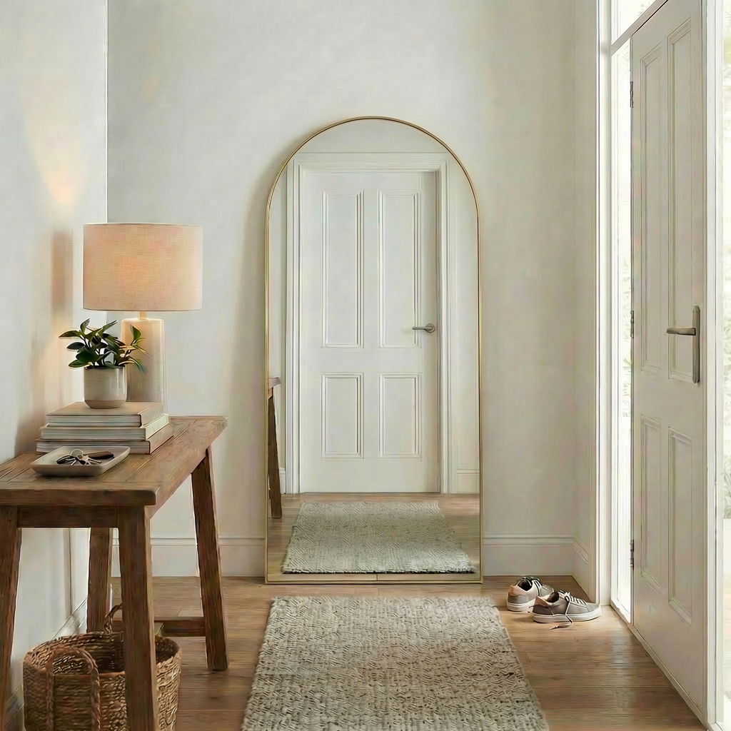 The Arch Full Length Mirror in Brushed Brass stands as a reliable addition to any home, offering a practical floor mirror solution that is also suitable for bathrooms. With its sturdy build and simple design, it ensures long-term use and ease of installation. A dependable choice for those seeking quality and functionality from their decor.