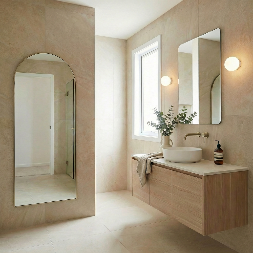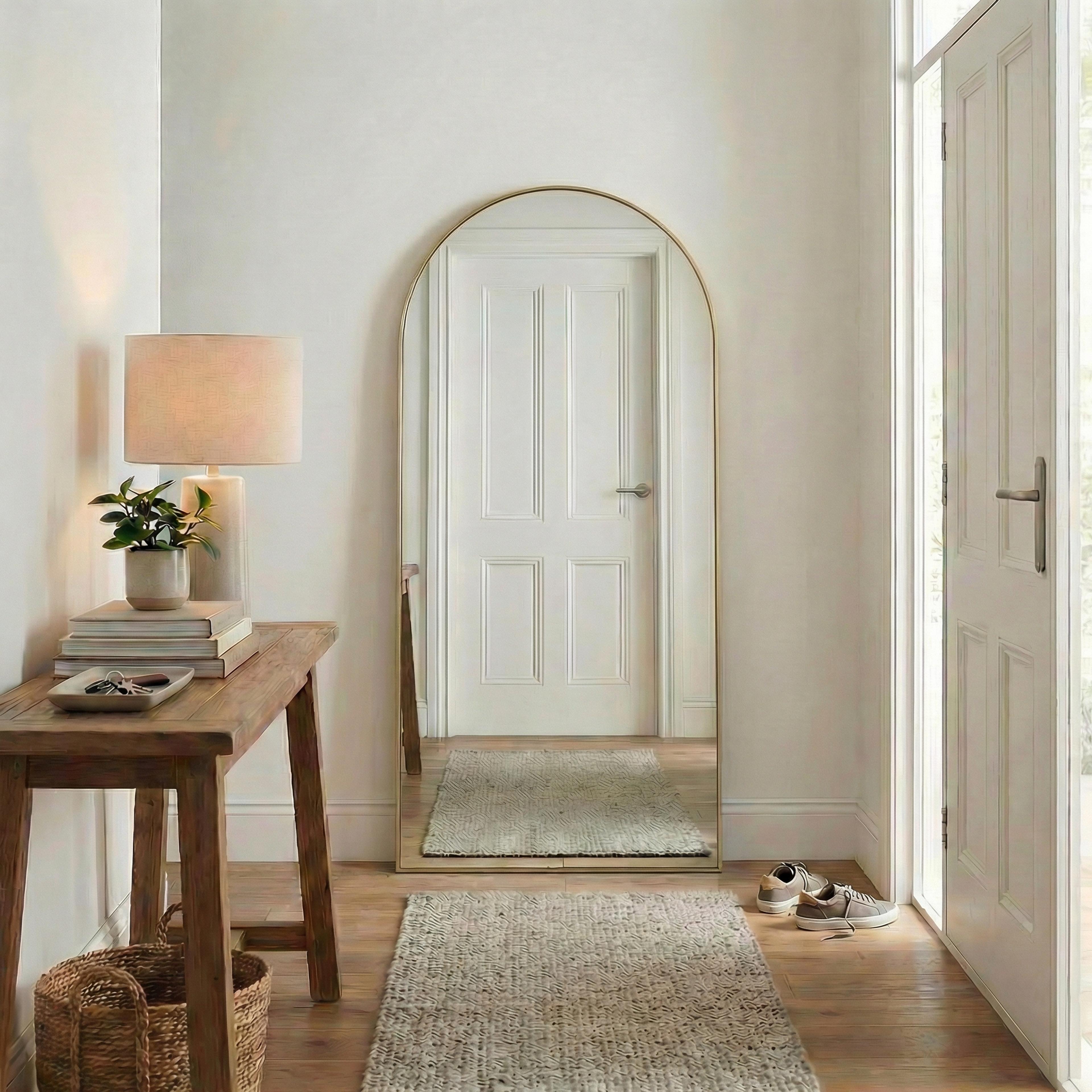 The Arch Full Length Mirror in Warm Brushed Nickel is a practical addition to any home, offering a reliable and easy-to-install solution. Its warm brushed nickel finish complements its sturdy build, ensuring long-term use and dependable performance. Perfect for those seeking a floor mirror that combines functionality with a refined design. Suitable for any living area and in bathrooms.