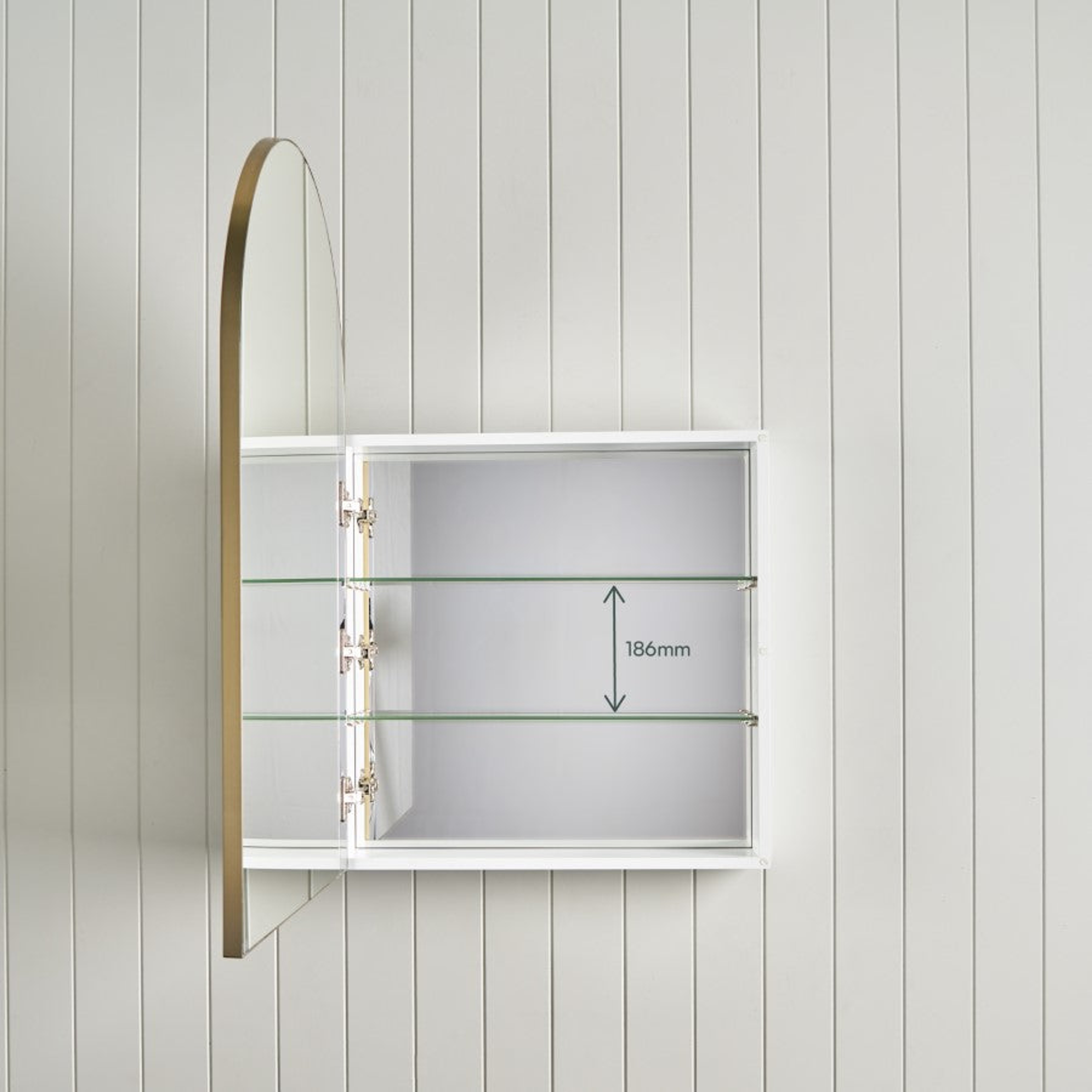 The Arch Mirror Cabinet in Brushed Brass is a practical addition to any bathroom, offering reliable storage with a sleek mirrored finish. Its simple design ensures easy installation and long-term durability, making it a dependable choice for everyday use. Trust in its quality build to enhance your bathroom's functionality.