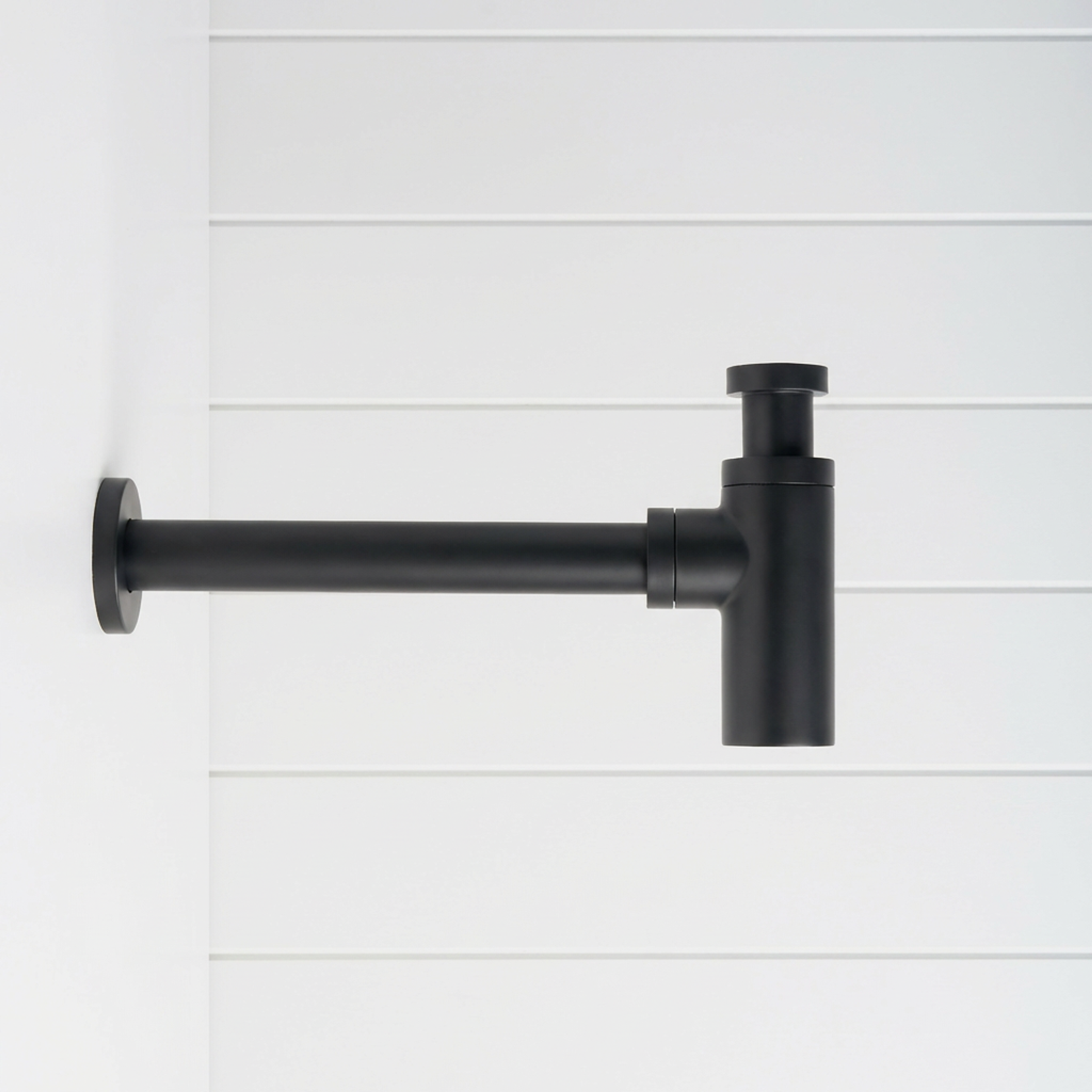 The Basin Bottle Trap in Matte Black offers a practical solution for wall hung basins and vanities. This bottle trap is easy to install and ensures smooth operation, making it a dependable choice for any bathroom.