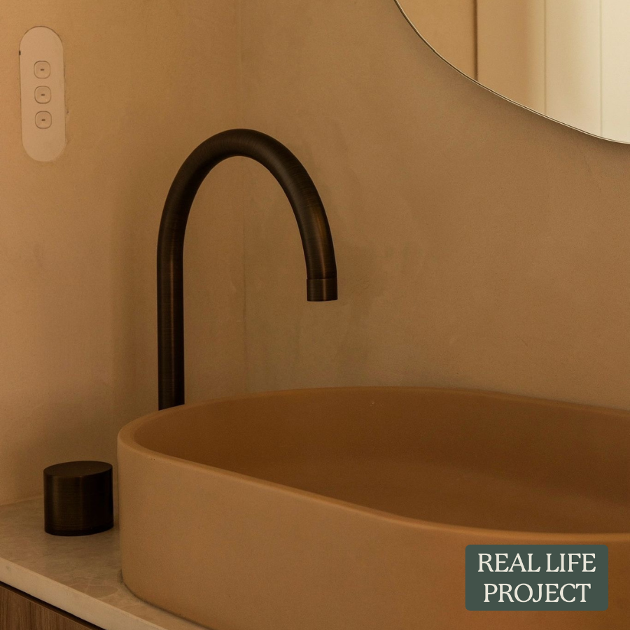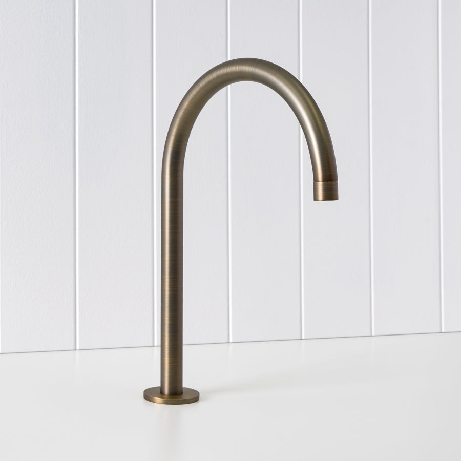 The Sydney Basin Spout in Antique Brass is a great choice if you like classic colour with modern function. The stainless steel body is durable and easy to clean, while the high reach spout gives plenty of room for washing hands and filling vessels. A simple way to update bathroom tapware.