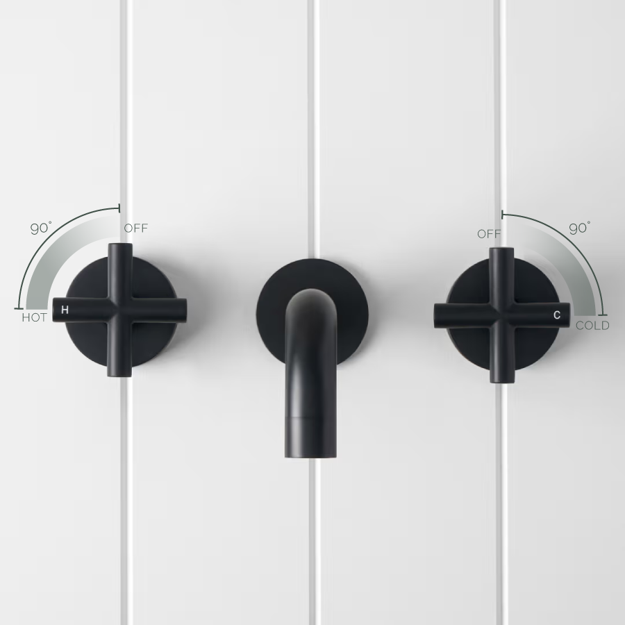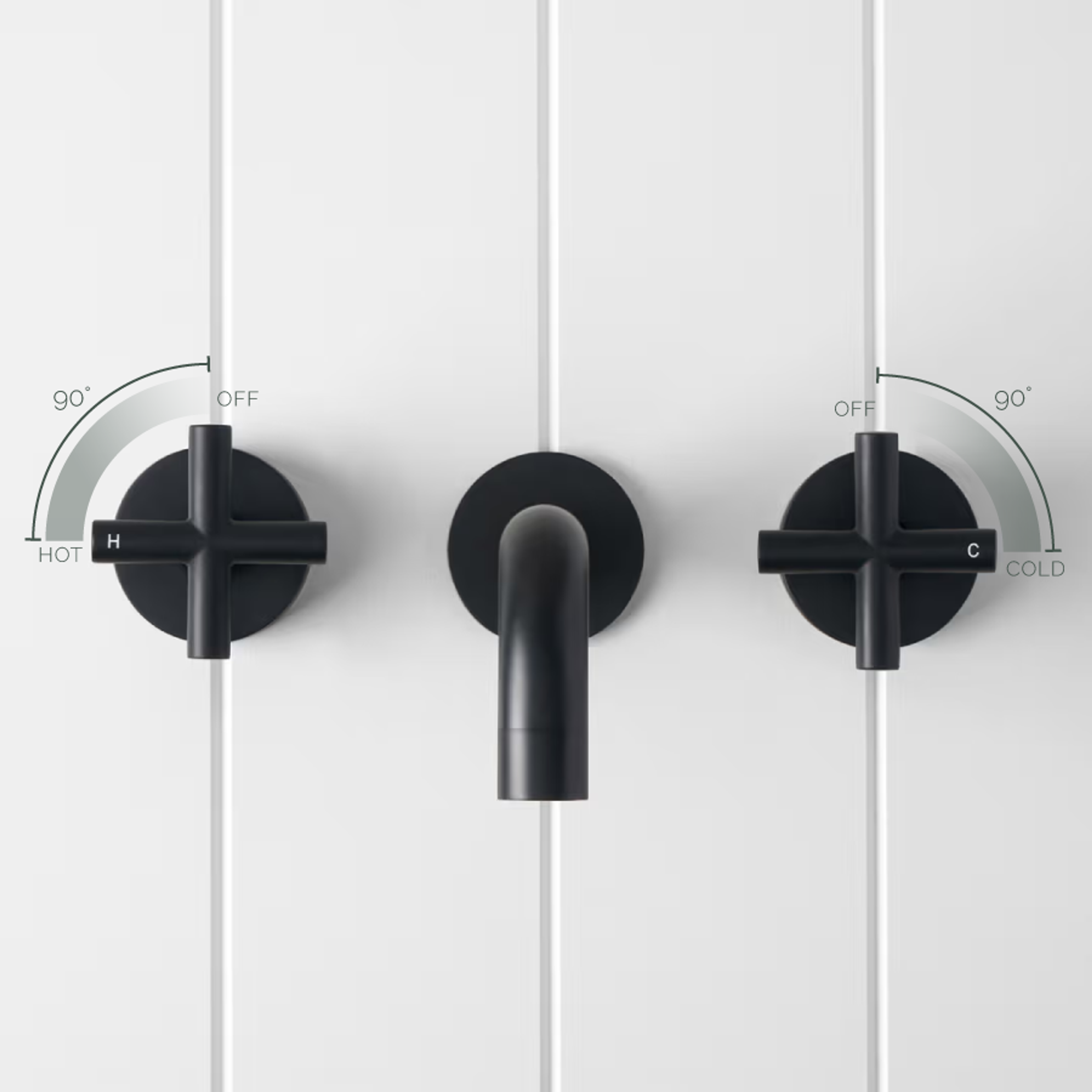 The Sydney Wall Spout and Cross Taps in Matte Black is a practical way to get a black tap look with everyday usability. The Matte Black finish over stainless steel is designed for regular use, and the cross taps are easy to turn with wet hands. Wall mounting keeps cleaning around the basin simple.