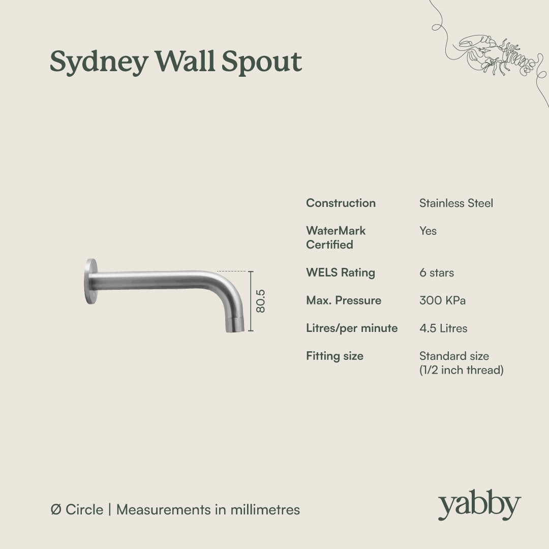 The Sydney Wall Spout in Matte Black is a practical way to bring black tapware into the bathroom. The durable finish over stainless steel is made for regular use, and the spout projection keeps water falling neatly into the basin. Wall mounting also makes cleaning the vanity easier.