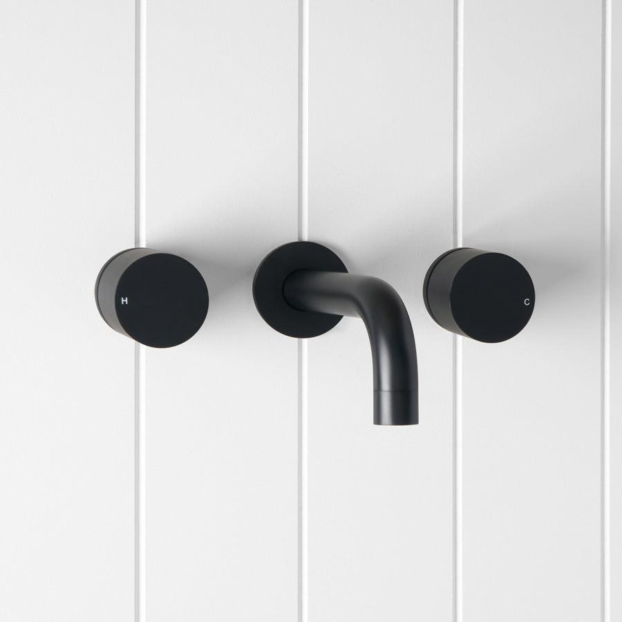 Wall Spout + Round Wall Taps Matte Black