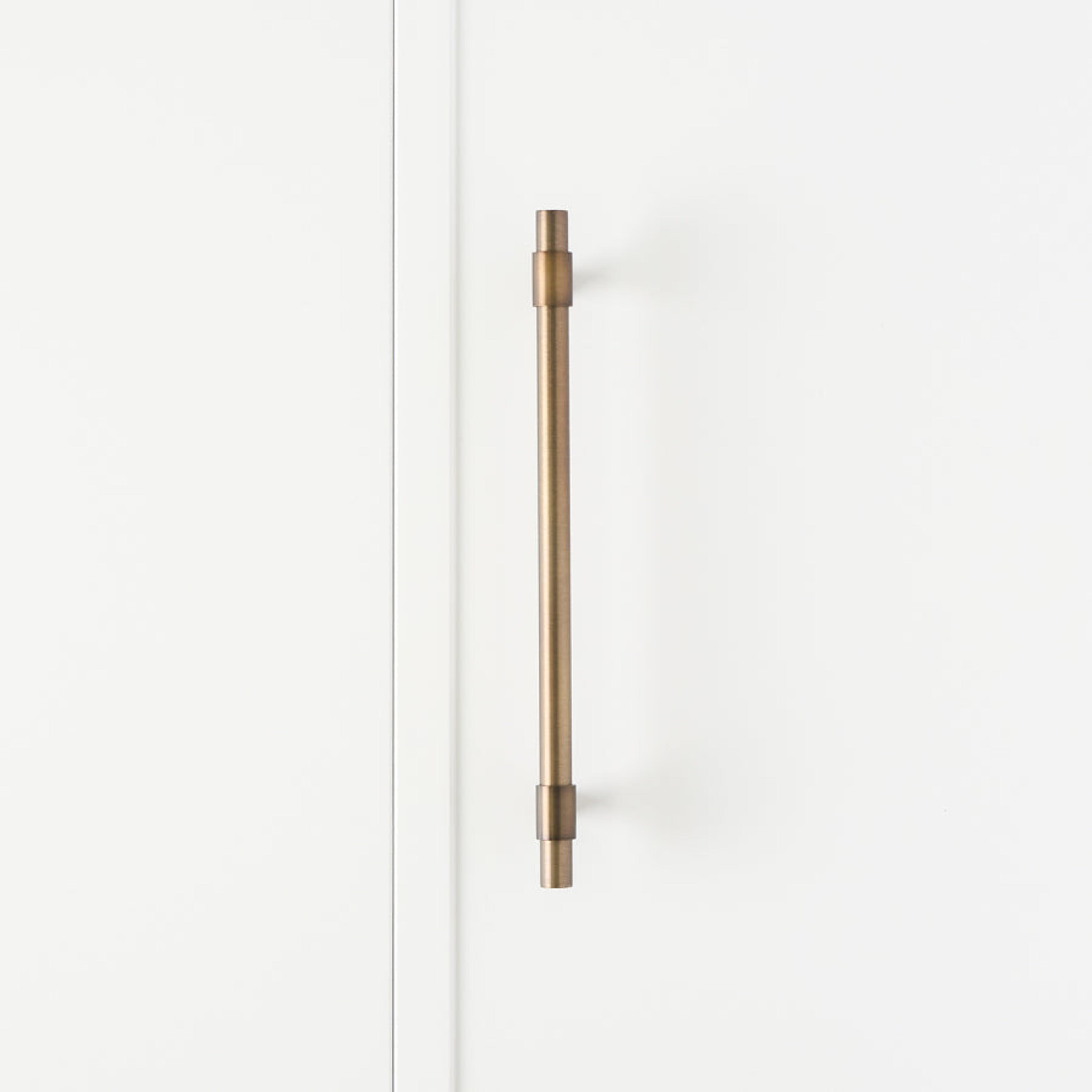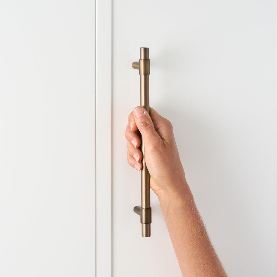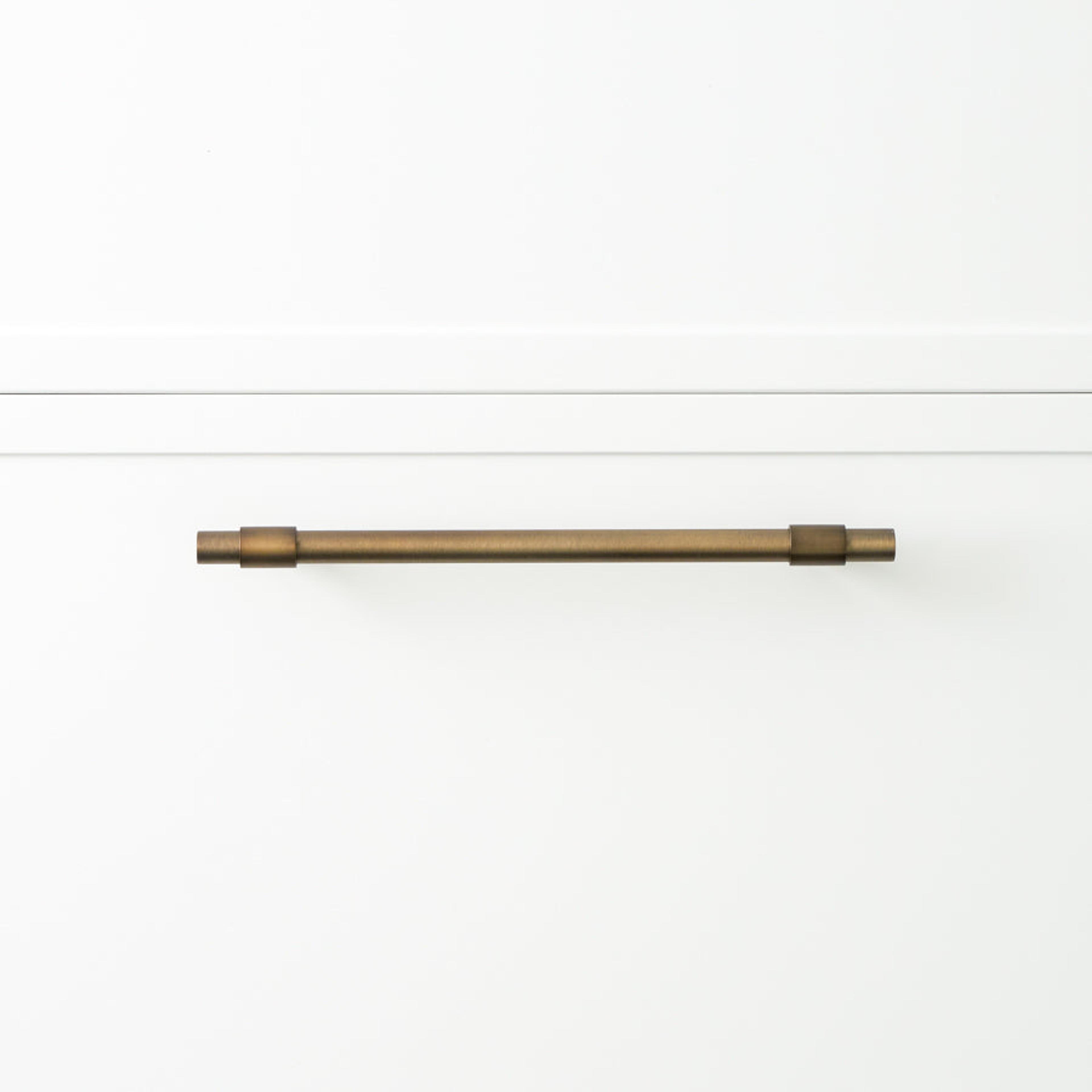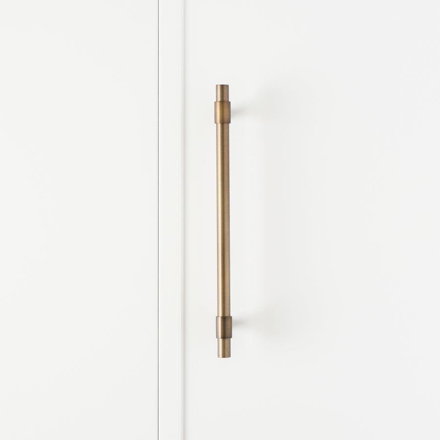 The Cabinetry Pull in Antique Brass (250mm) offers a seamless blend of practicality and style, perfect for any doors, vanities, appliances, and cabinetry. Its antique brass finish brings warmth and a sense of history to your home, inviting a calm and sophisticated lifestyle.