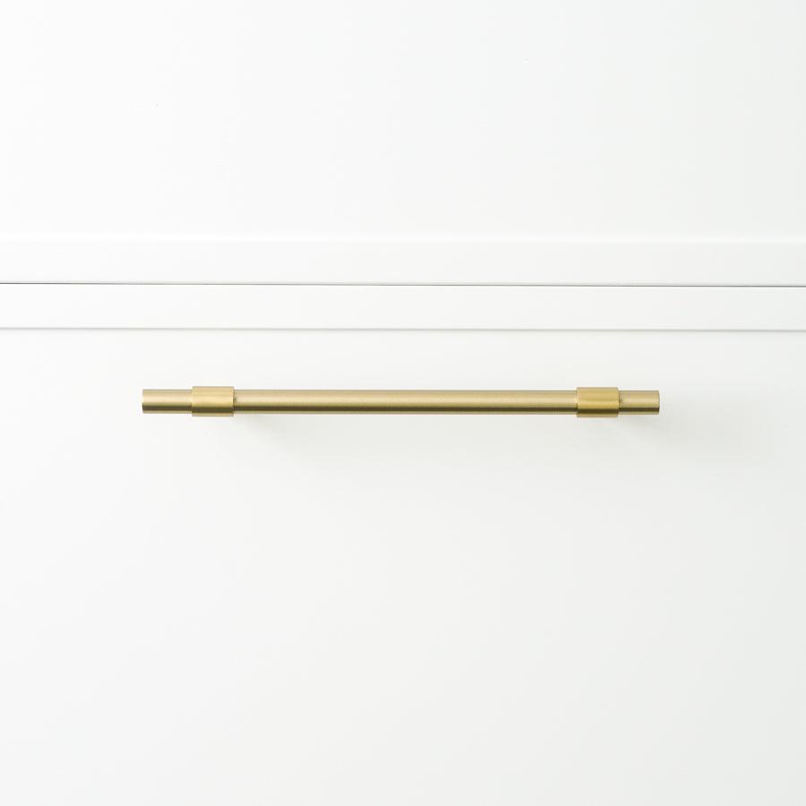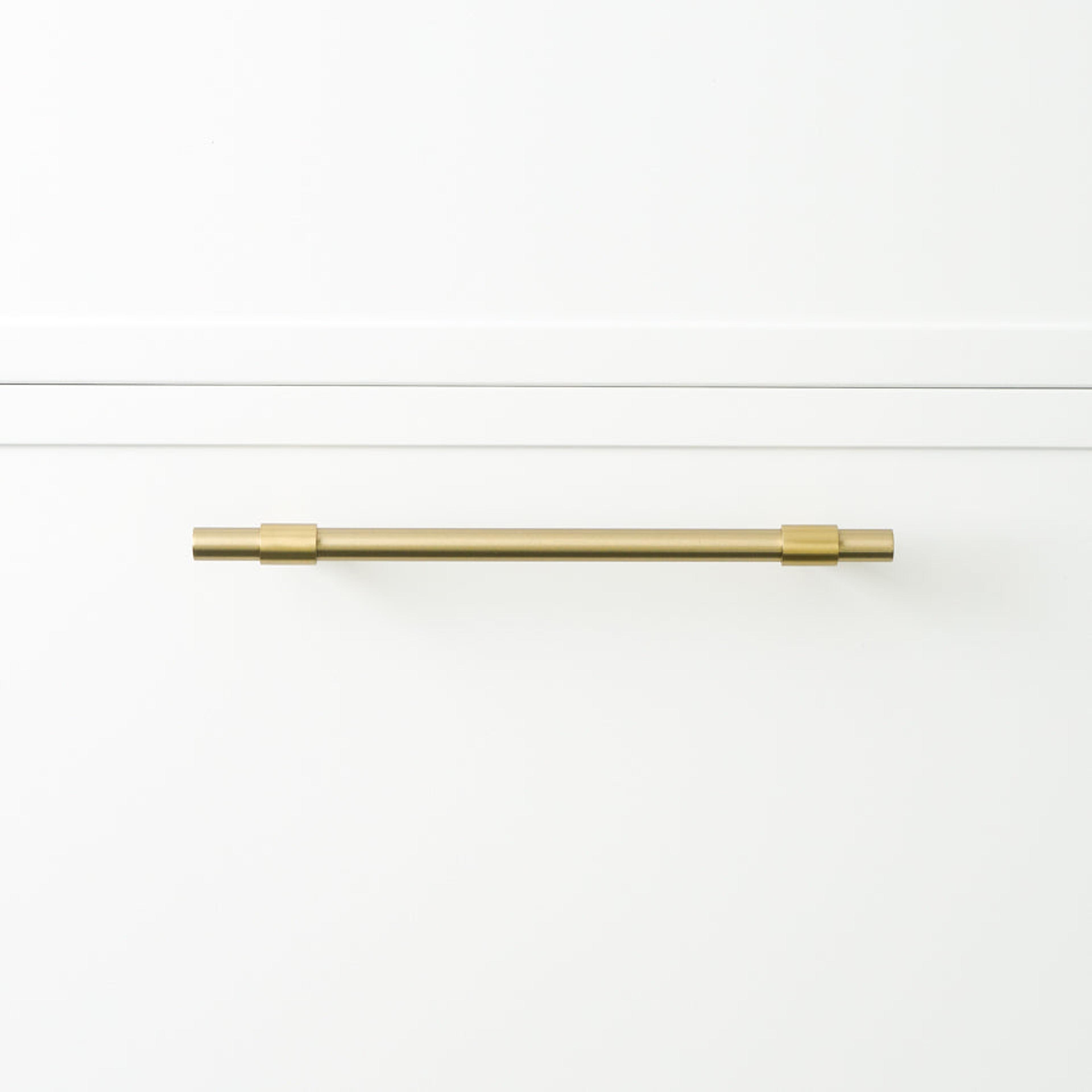 The Cabinetry Pull in Brushed Brass (250mm) offers a refined touch to your cabinetry with its sleek design. Perfect for adding a warm, textural element to your space, this cabinet handle is a great addition to your doors, vanities and cabinetry. An effortless way to refresh your space, it enhances both modern and traditional settings with ease.