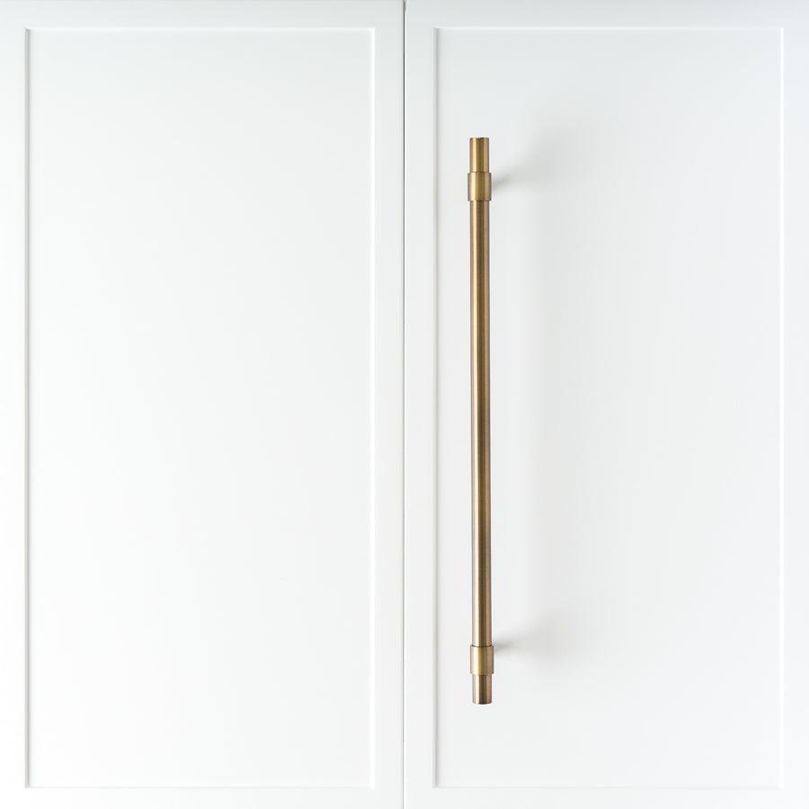 The Cabinetry Pull in Antique Brass (400mm) offers a seamless blend of practicality and style, perfect for any kitchen or bathroom. This cabinet handle ensures smooth operation and easy installation, making it a reliable choice for cabinetry, doors, vanities and appliances. Crafted with quality materials, it promises durability and long-term performance.