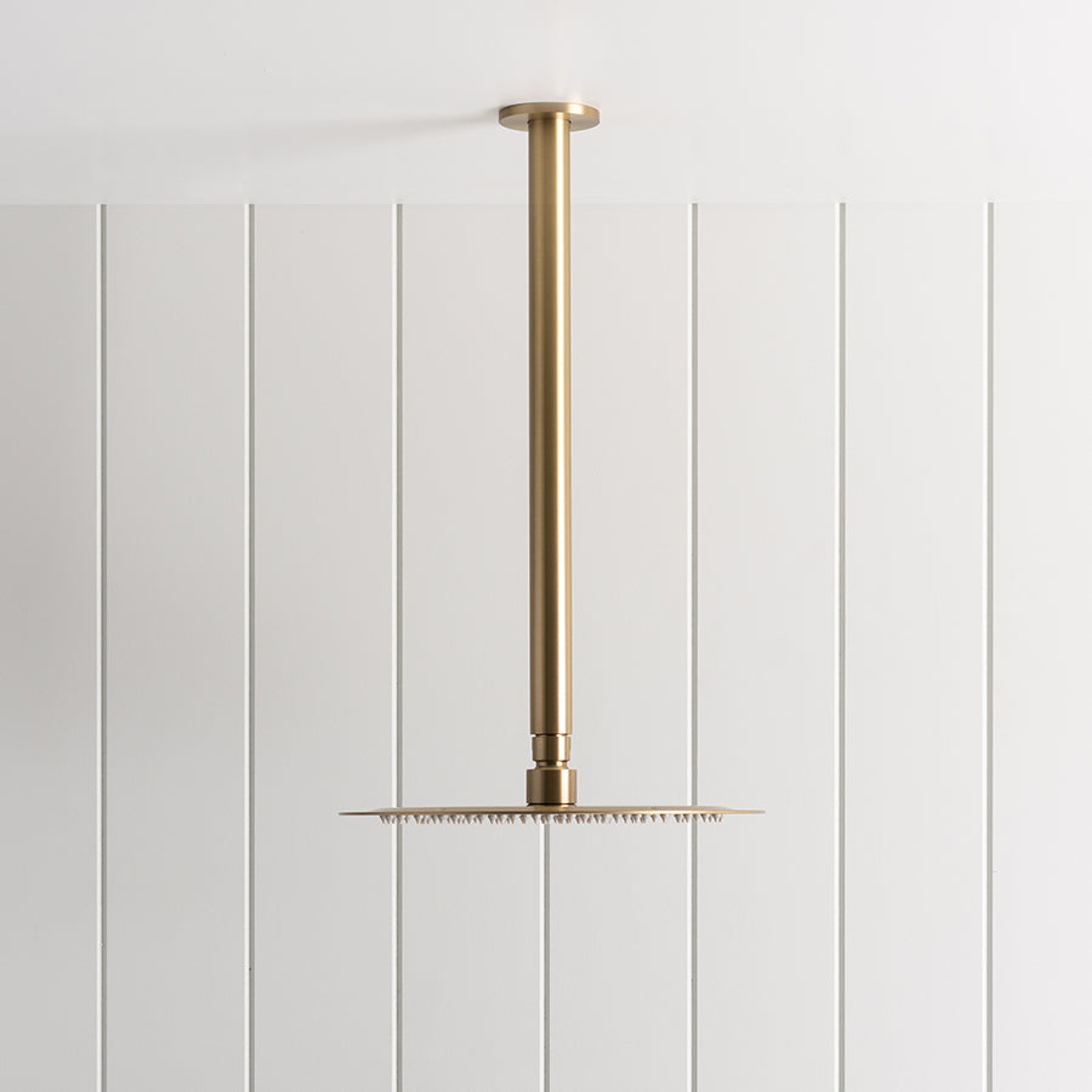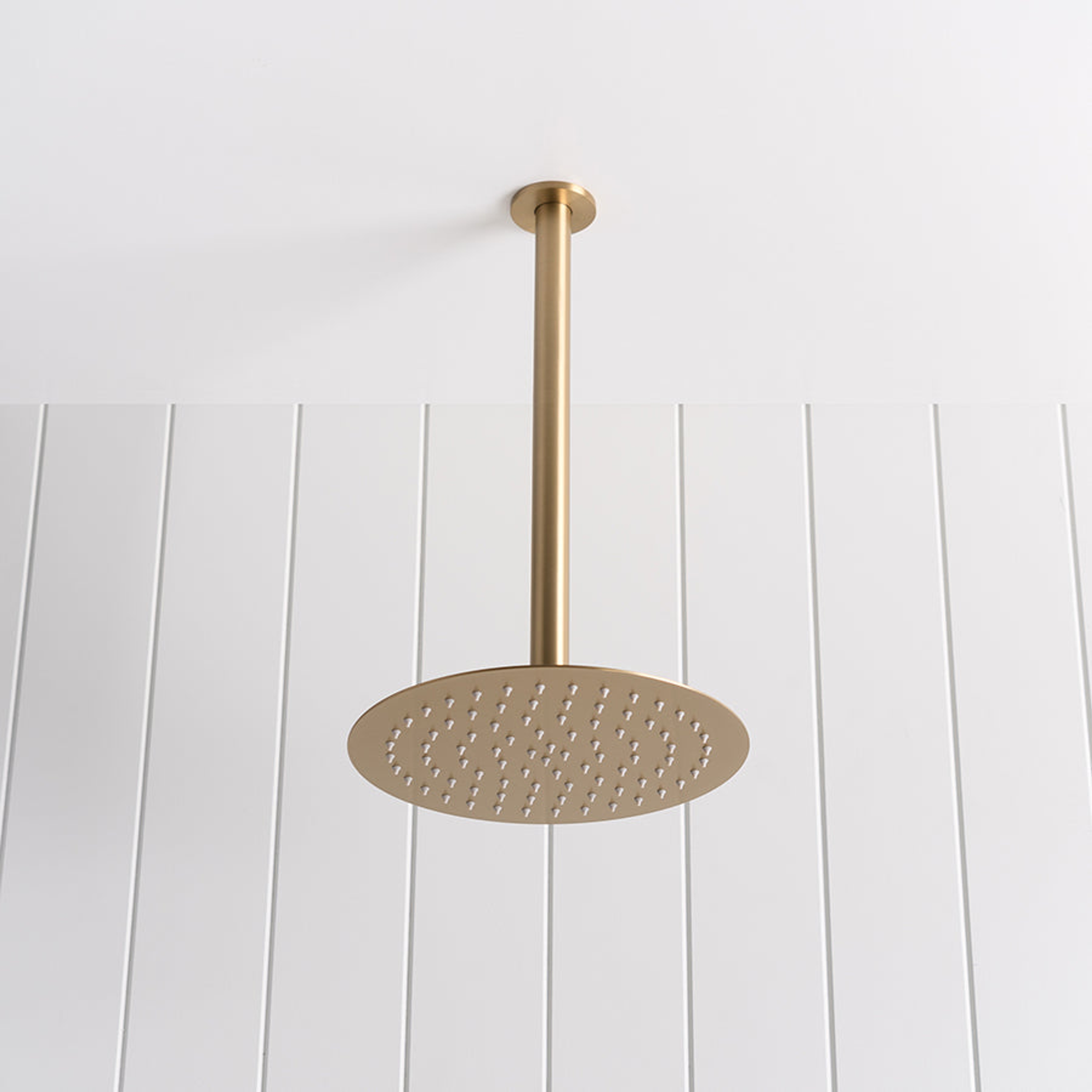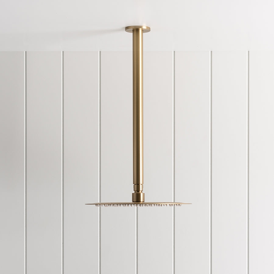 The Ceiling Shower Arm and Head in Brushed Brass transforms your bathroom into a serene retreat with its sleek design and gentle rain shower experience. This elegant piece of tapware adds a touch of modern luxury, enhancing the overall ambience with its warm, brushed brass finish. Perfect for creating a calm, inviting space where you can unwind and refresh.