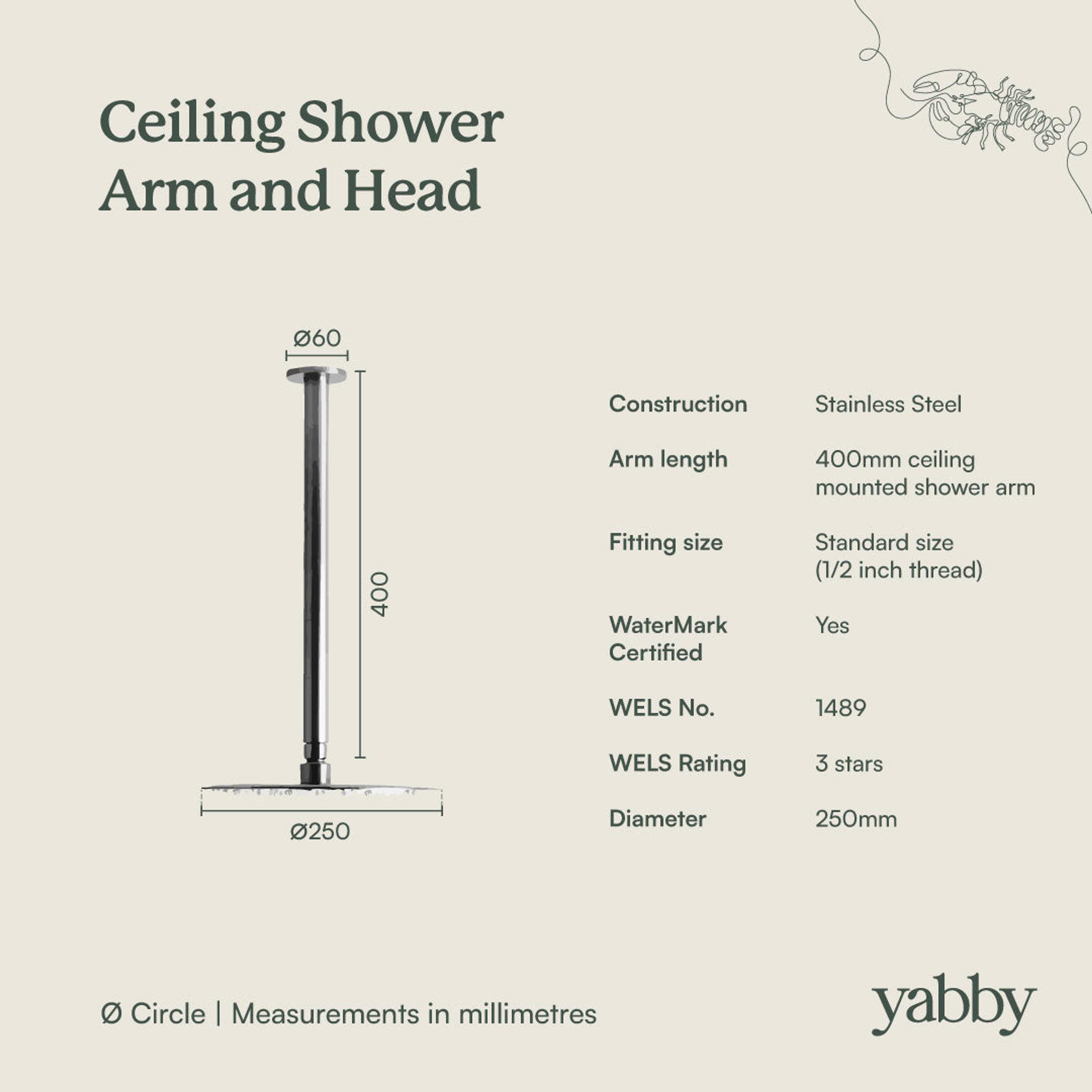 | Arm Length | 400mm - ceiling mounted shower arm |