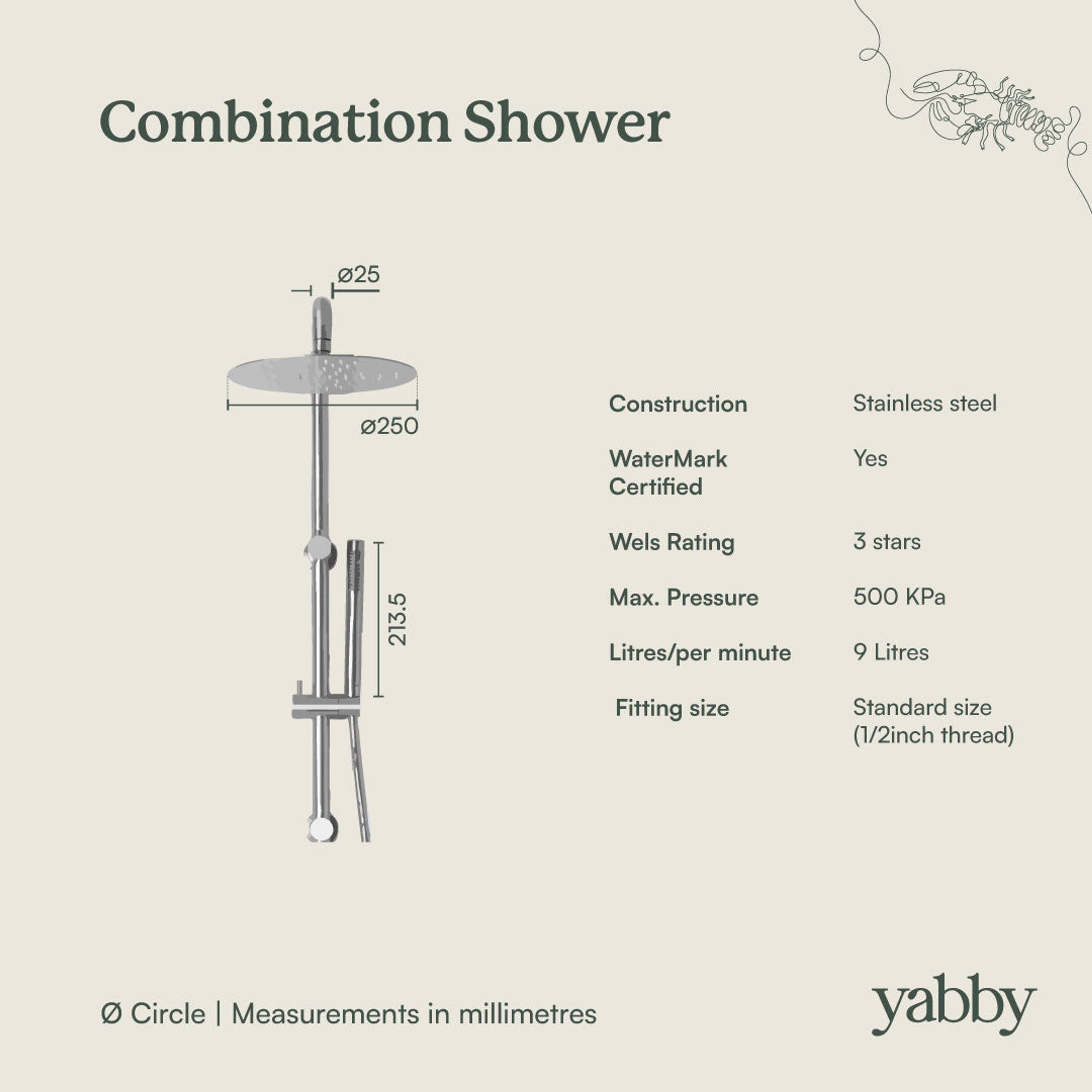 The combination shower requires taps or mixer to be purchased separately. Options linked below.