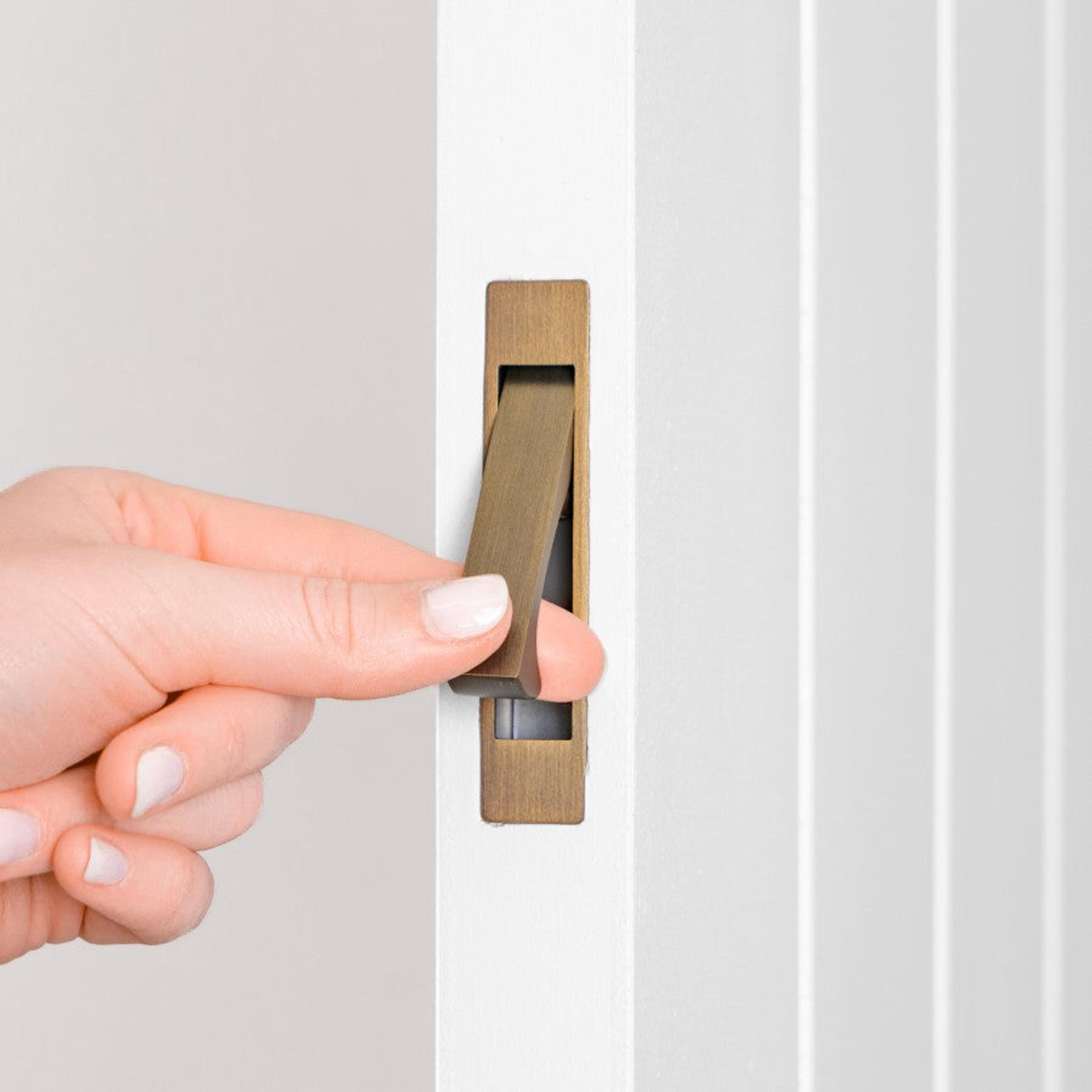 The Concealed Hook Pull Handle in Antique Brass is a a subtle way to add colour and functionality to your sliding doors. Designed to offer a seamless look, this pull handle has an easy to grasp handle that is concealed when not in use. An effortless way to refresh your home with style and functionality.