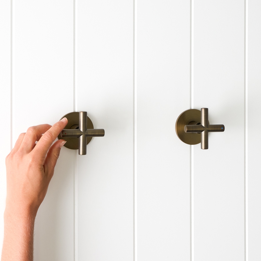 The Cross Taps in Antique Brass brings a warm, textural touch to your bathroom or kitchen. Designed for easy installation, this tapware ensures long-term durability and everyday functionality.