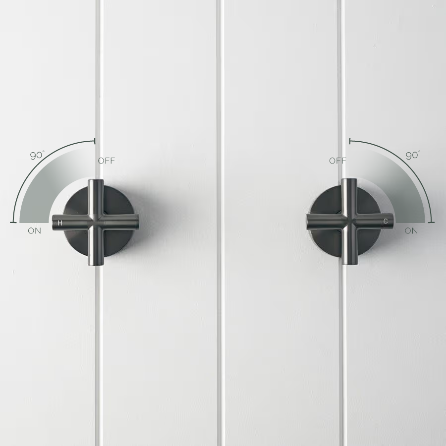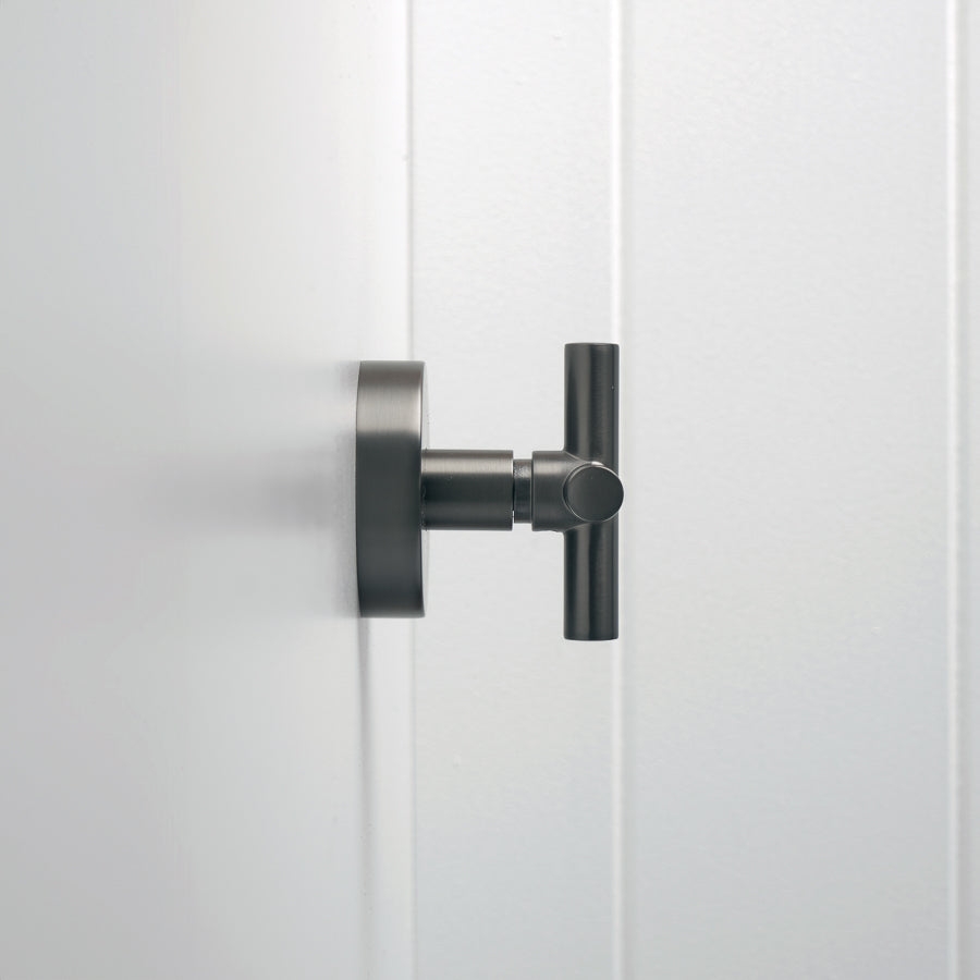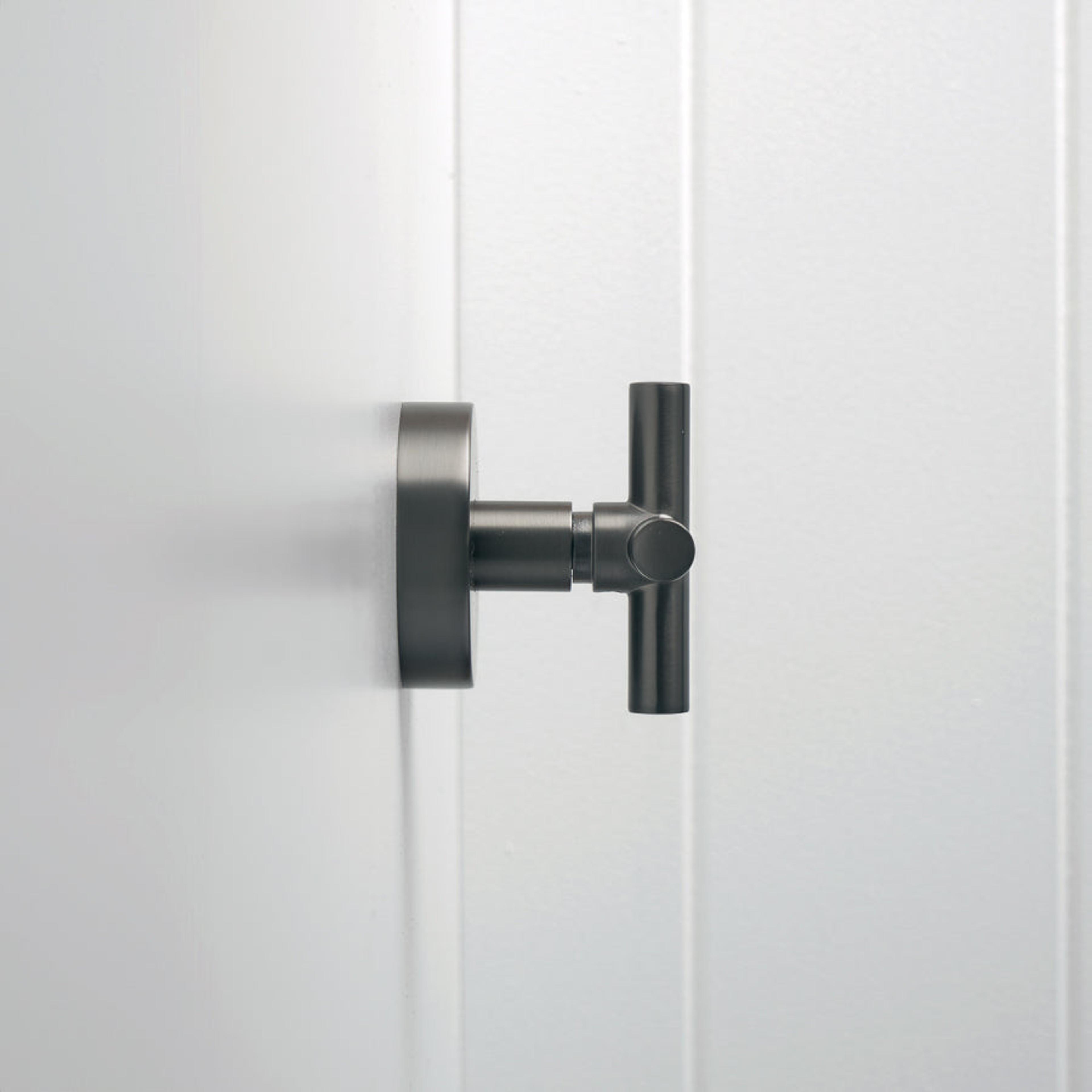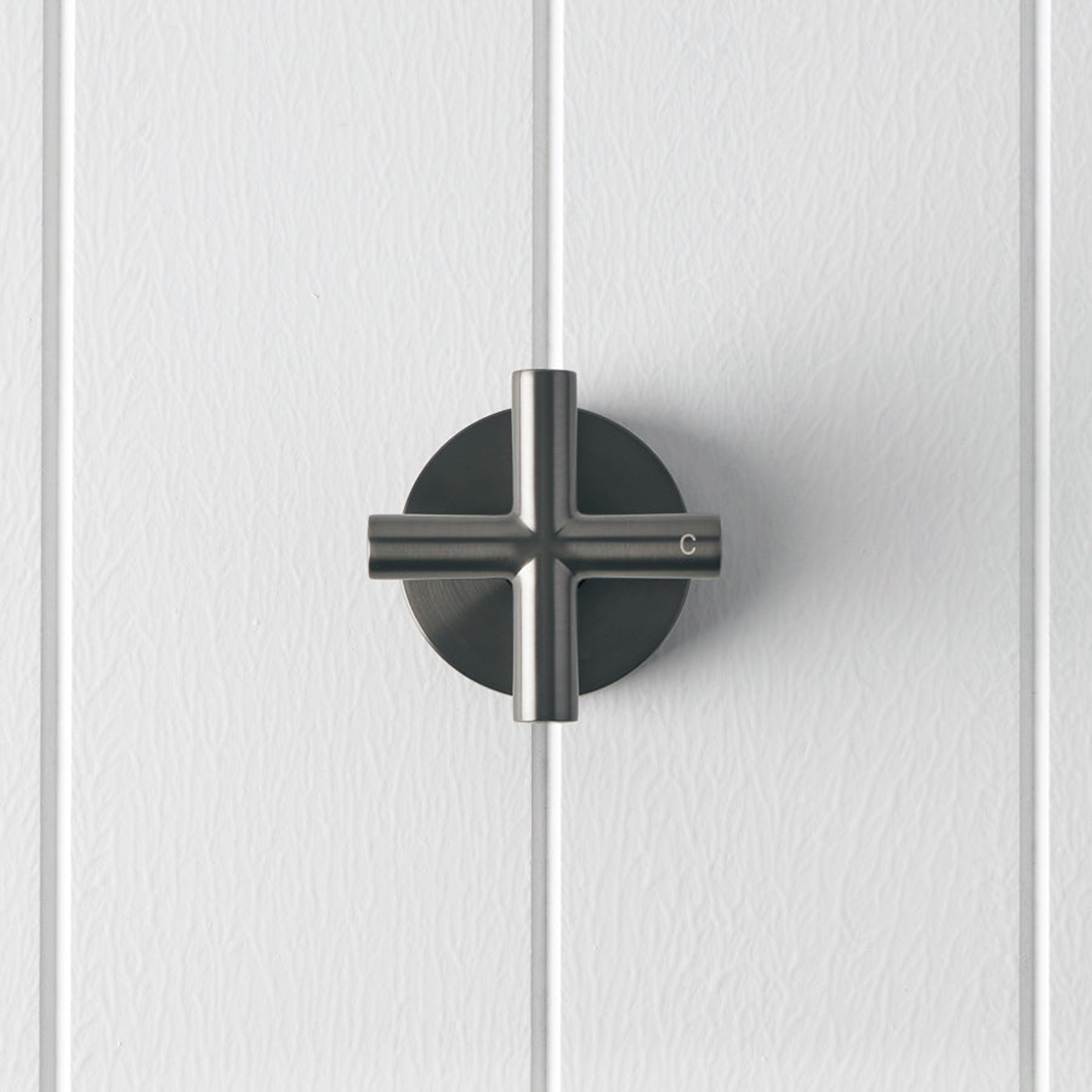 The Cross Taps in Gunmetal brings a refined touch to your bathroom or kitchen. This sleek tapware in a gunmetal finish adds a modern edge, enhancing the textural interplay of light and shadow in your space. Perfect for creating a calm, contemporary atmosphere.