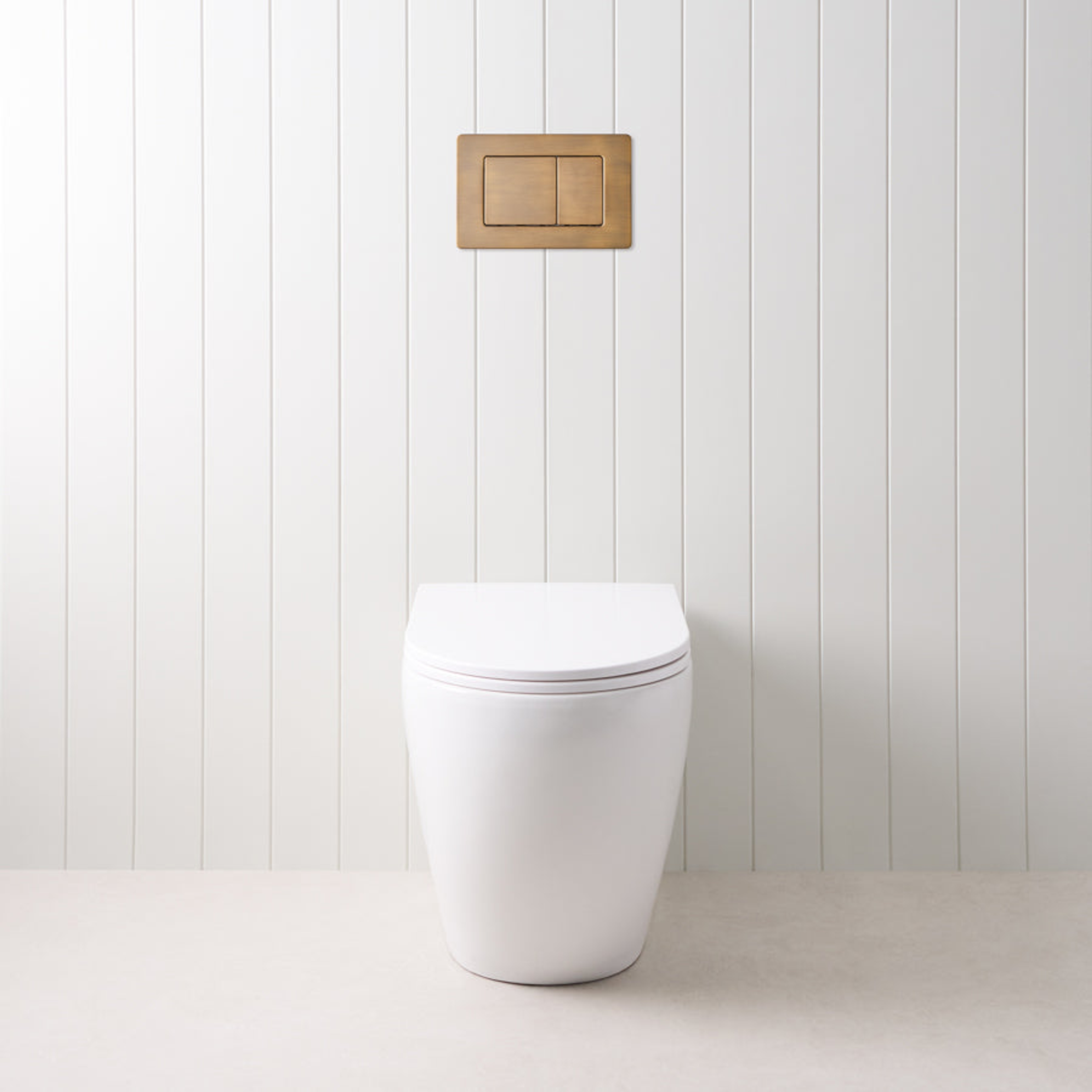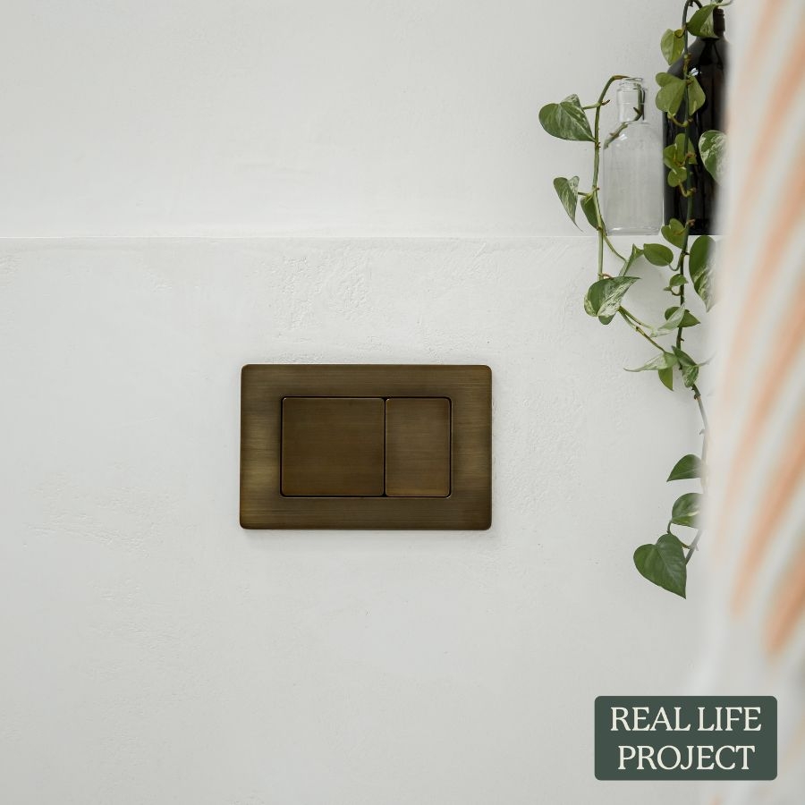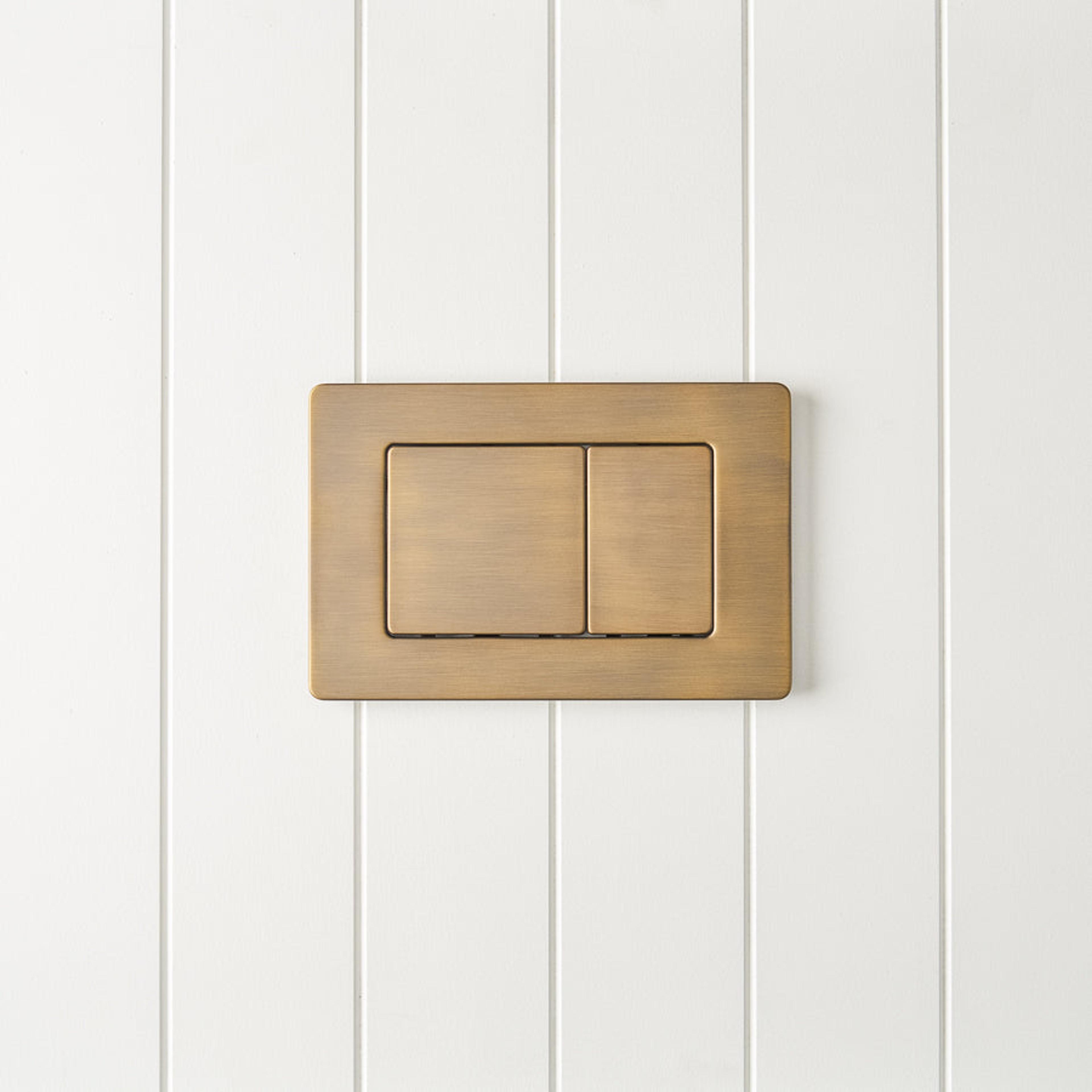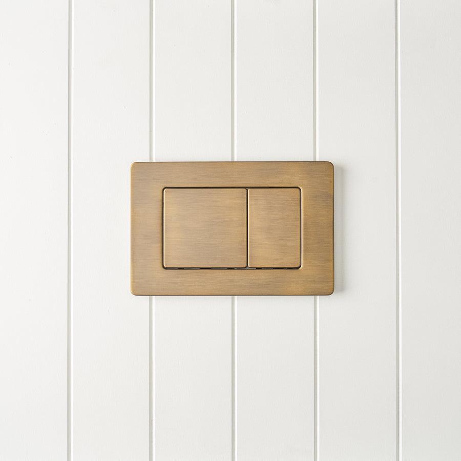 Curved In-Wall Toilet With Rectangle Antique Brass Buttons