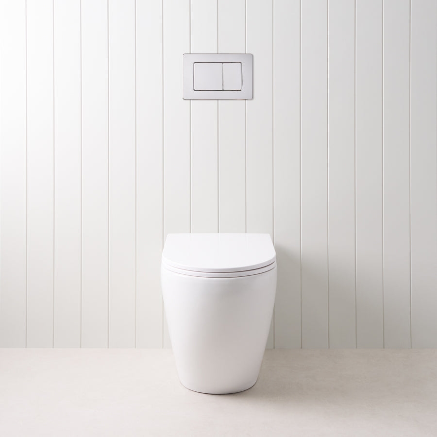 The Curved In-Wall Toilet With Rectangle Chrome Buttons offers a seamless blend of practicality and style, perfect for any modern bathroom. Its in-wall design ensures a clean, uncluttered look, while the rectangle chrome buttons provide smooth, reliable operation. Built with premium materials, this toilet promises long-lasting performance and ease of use, making it a dependable choice for Australian homes.