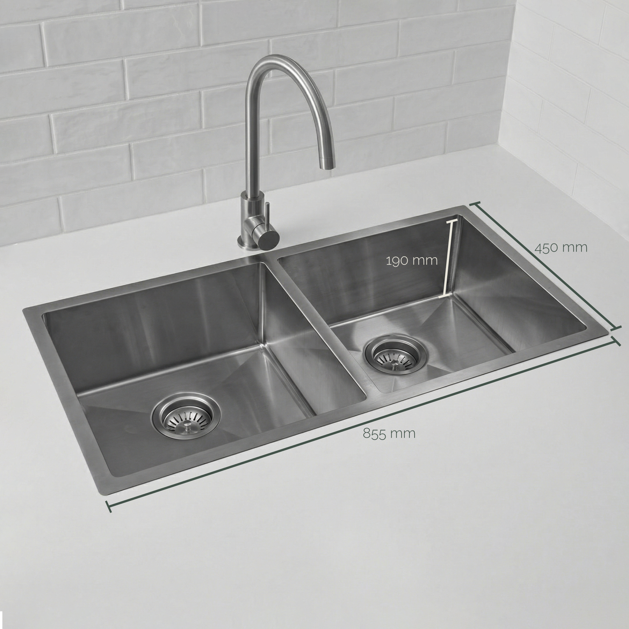 The Double Bowl Sink 855x450mm Stainless Steel offers a practical and reliable solution for any kitchen. Crafted for durability and ease of use, this double sink ensures smooth operation and long-lasting performance. Trust in its quality build to handle everyday tasks with confidence.