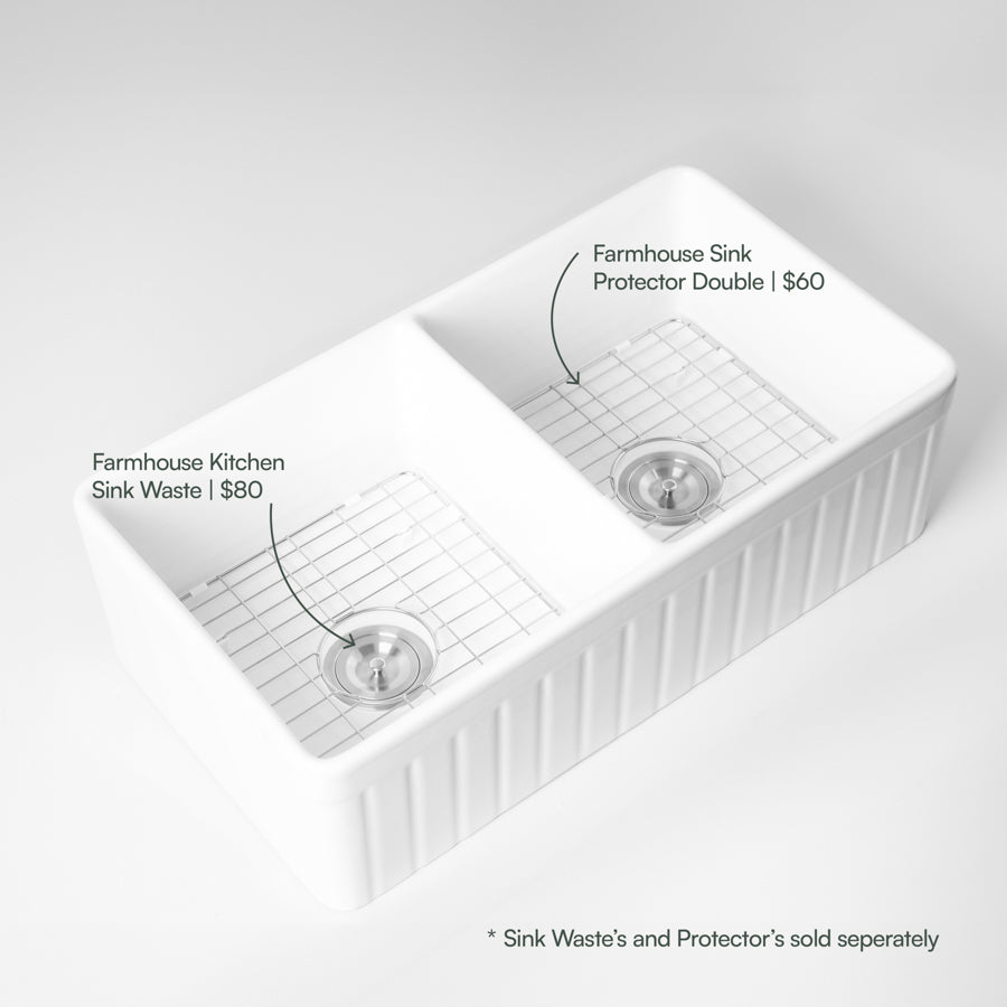 | Features | Fluting design on one side of sink with smooth design on other side for versatile installation options. |
