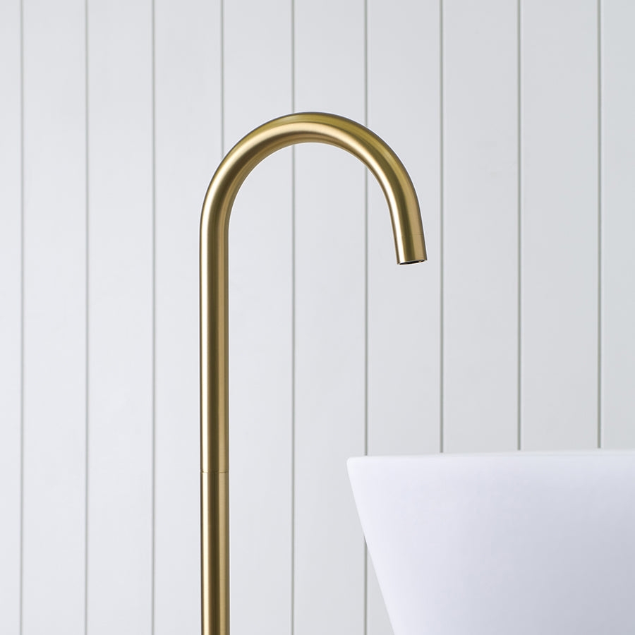 The Freestanding Bath Spout in Brushed Brass offers a seamless blend of practicality and style, perfect for any bathroom setup. This tapware is designed for easy installation and ensures smooth, reliable water flow with every use. Crafted from premium materials, it promises long-lasting performance and a refined finish that complements its functionality.