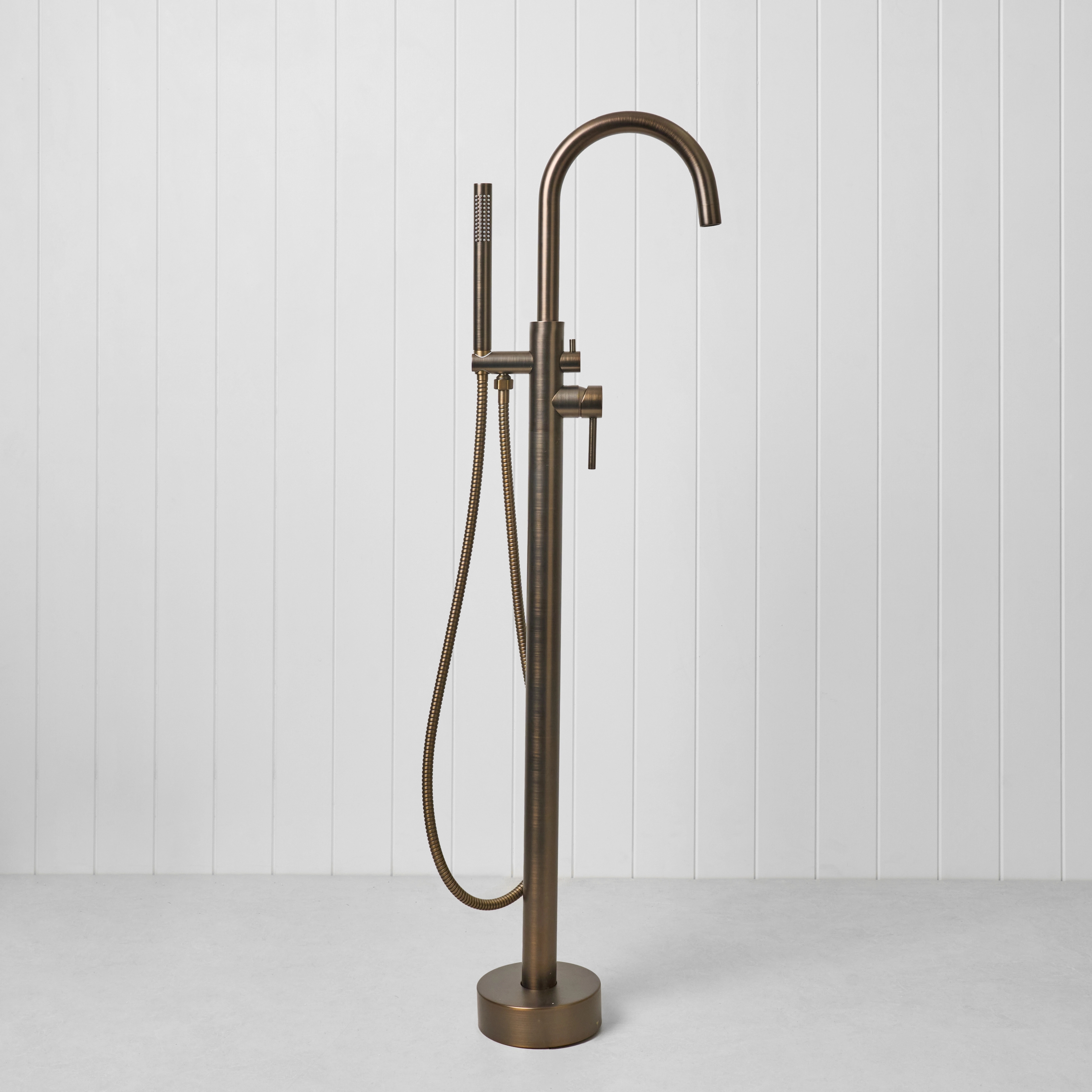 Freestanding Bath Spout + Straight Hand Shower Antique Brass