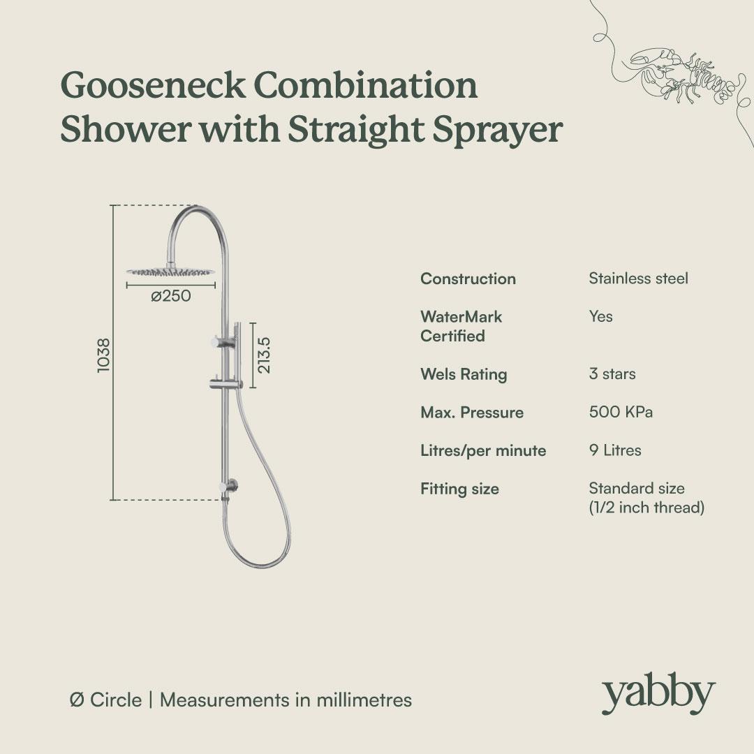The Gooseneck Combination Shower pairs a soothing overhead rain shower with our Straight Shower Hose + Sprayer, delivering everyday practicality with an elevated, refined look.