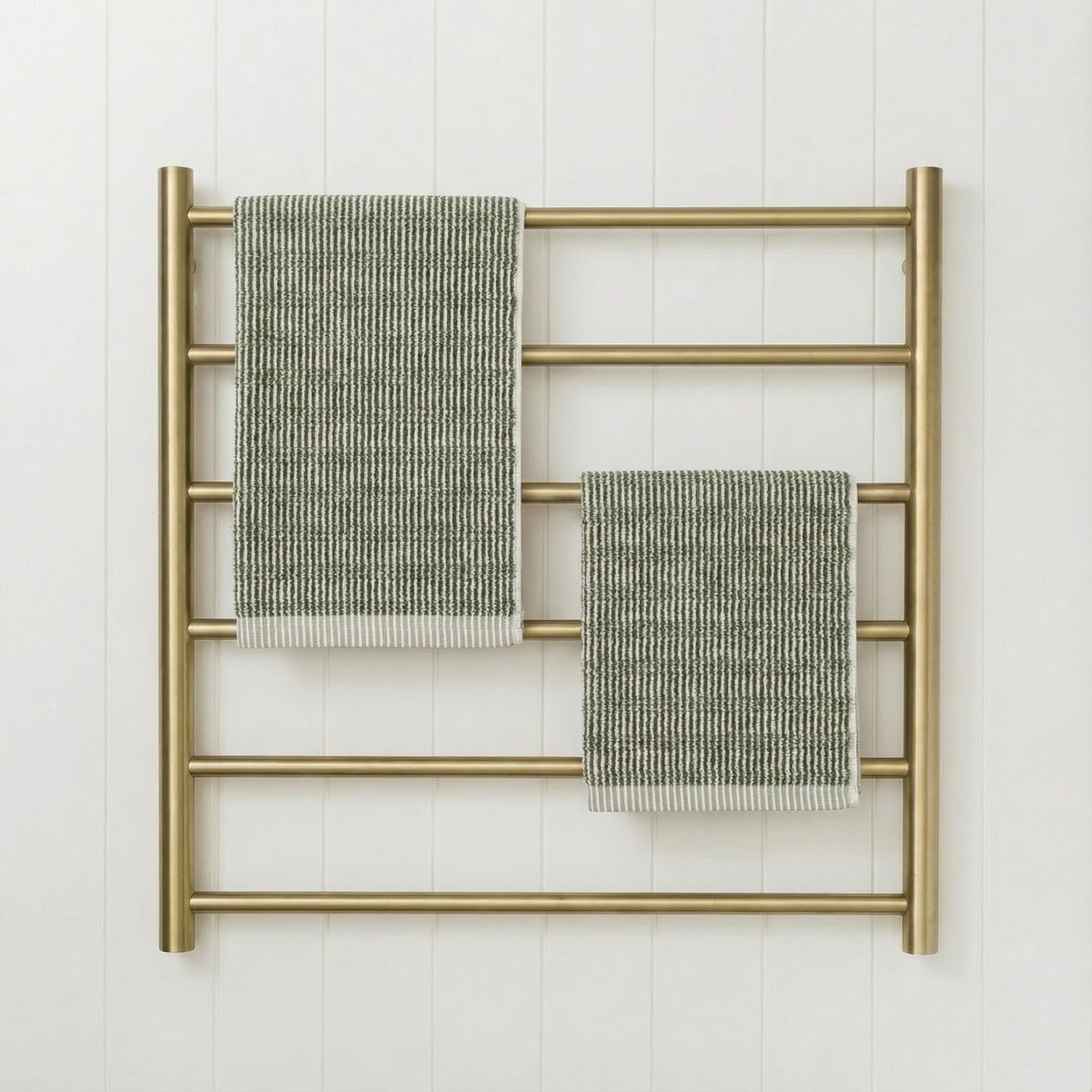 The Heated Towel Ladder in Warm Brushed Nickel offers a practical and stylish way to keep your bathroom organised, warm, and comfortable. With six spacious rails, it provides plenty of room to hang multiple towels — plus a bath mat — making it perfect for busy family bathrooms.