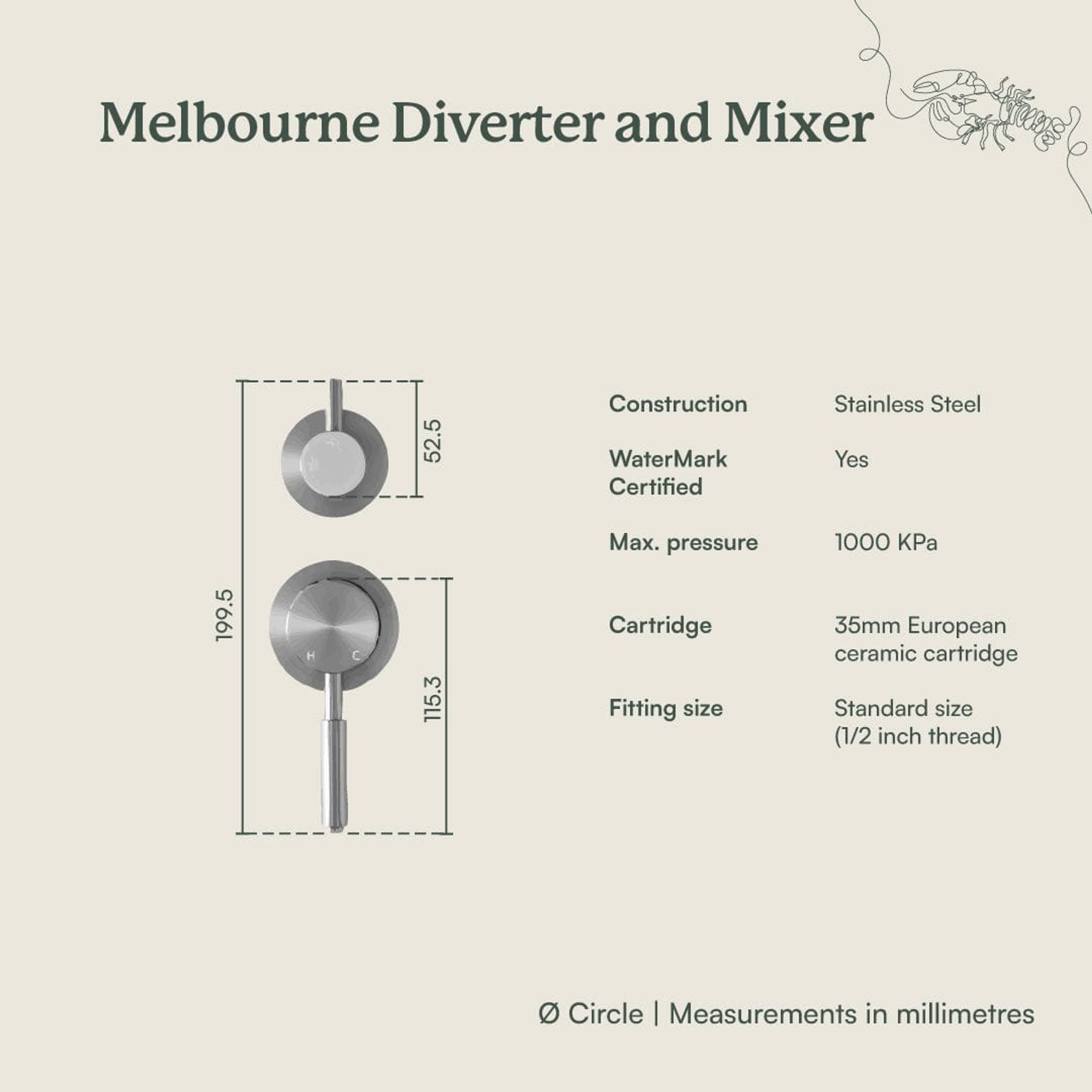 The Melbourne Shower Diverter and Mixer in Brushed Brass delivers smooth water control and a warm, brushed finish that hides marks with ease. Built for everyday use, it’s reliable, durable, and adds a touch of understated style to your bathroom.