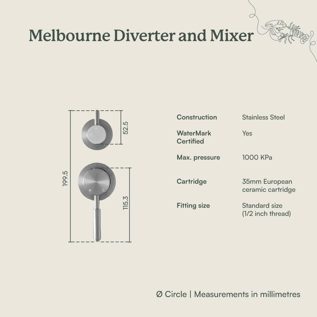 The Melbourne Shower Diverter and Mixer in Warm Brushed Nickel offers smooth control and a finish that’s easy to maintain. The soft brushed surface hides marks and fingerprints, while the stainless steel build ensures daily durability. Simple, stylish, and made to perform.