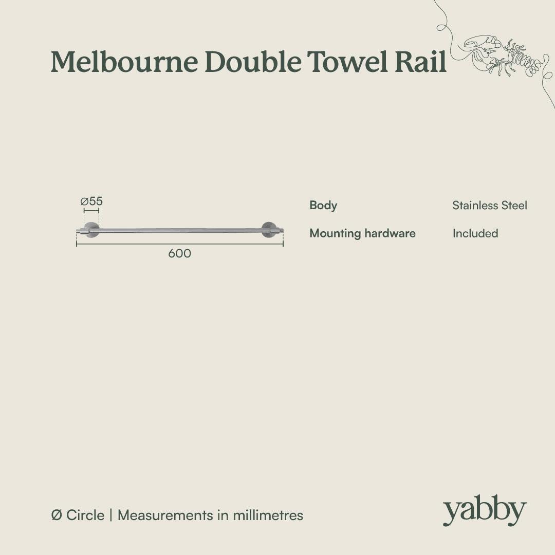 Melbourne Double Towel Rail 600mm Brushed Brass