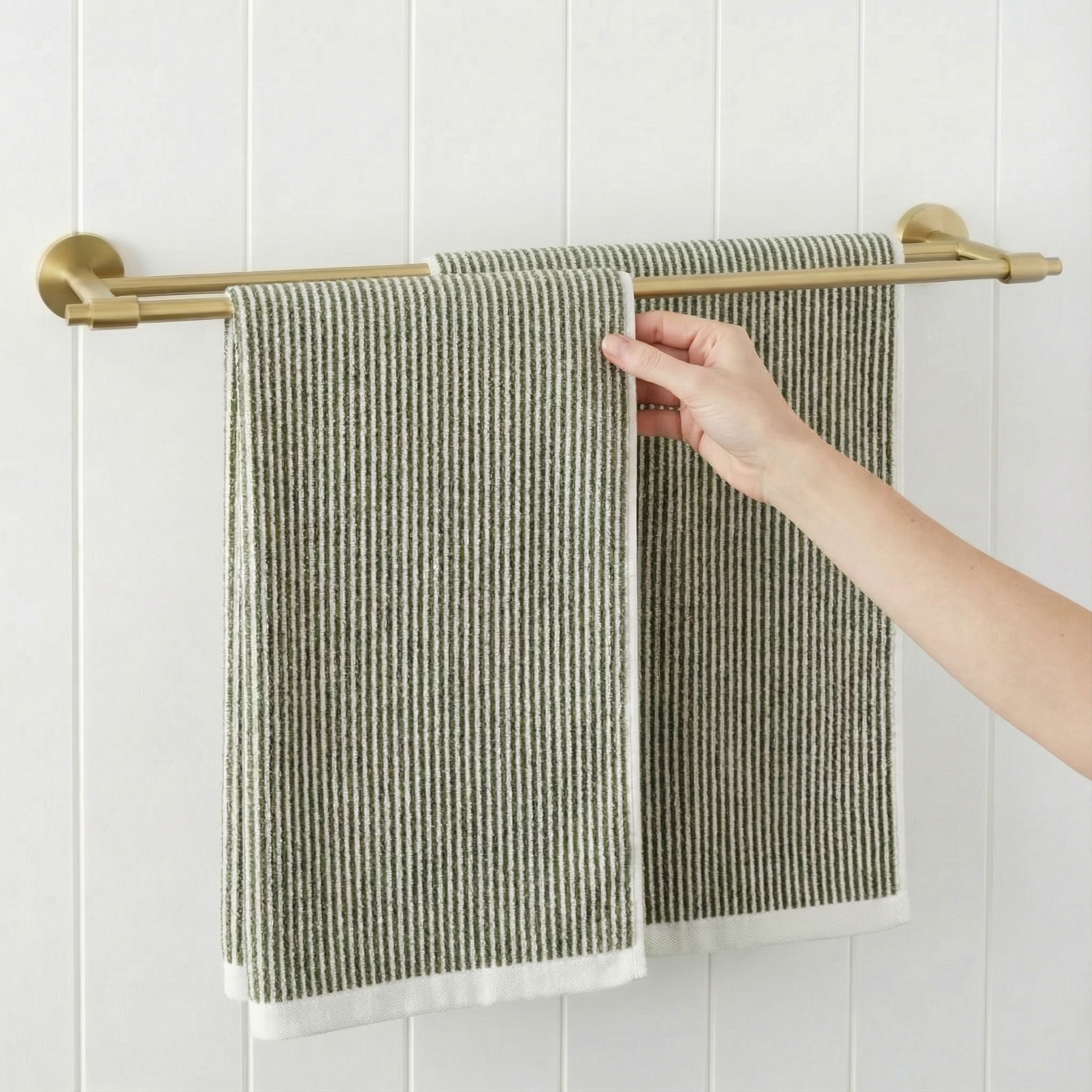 The Melbourne Double Towel Rail in Brushed Brass (600mm) combines practicality with a warm, brushed finish that hides watermarks and fingerprints. With two rails for added space, it’s reliable, easy to clean, and made for everyday living.