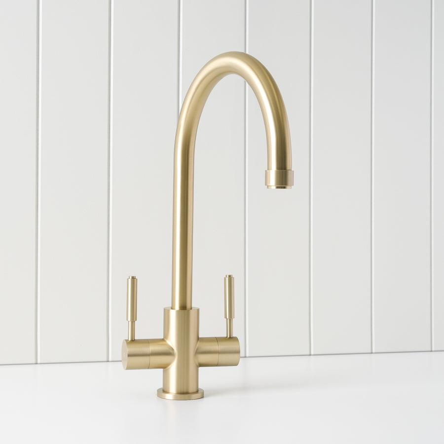 Melbourne Twin Tap Kitchen Mixer Warm Brushed Nickel