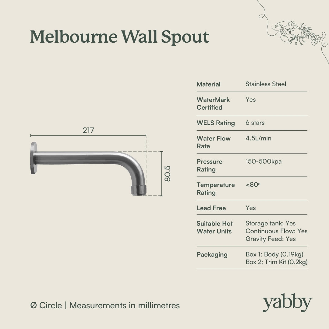 The Melbourne Wall Spout in Antique Brass combines classic character with modern function. The stainless steel build and durable coating resist marks and fingerprints, while the simple, curved design offers smooth water flow. Reliable, practical, and built to last.