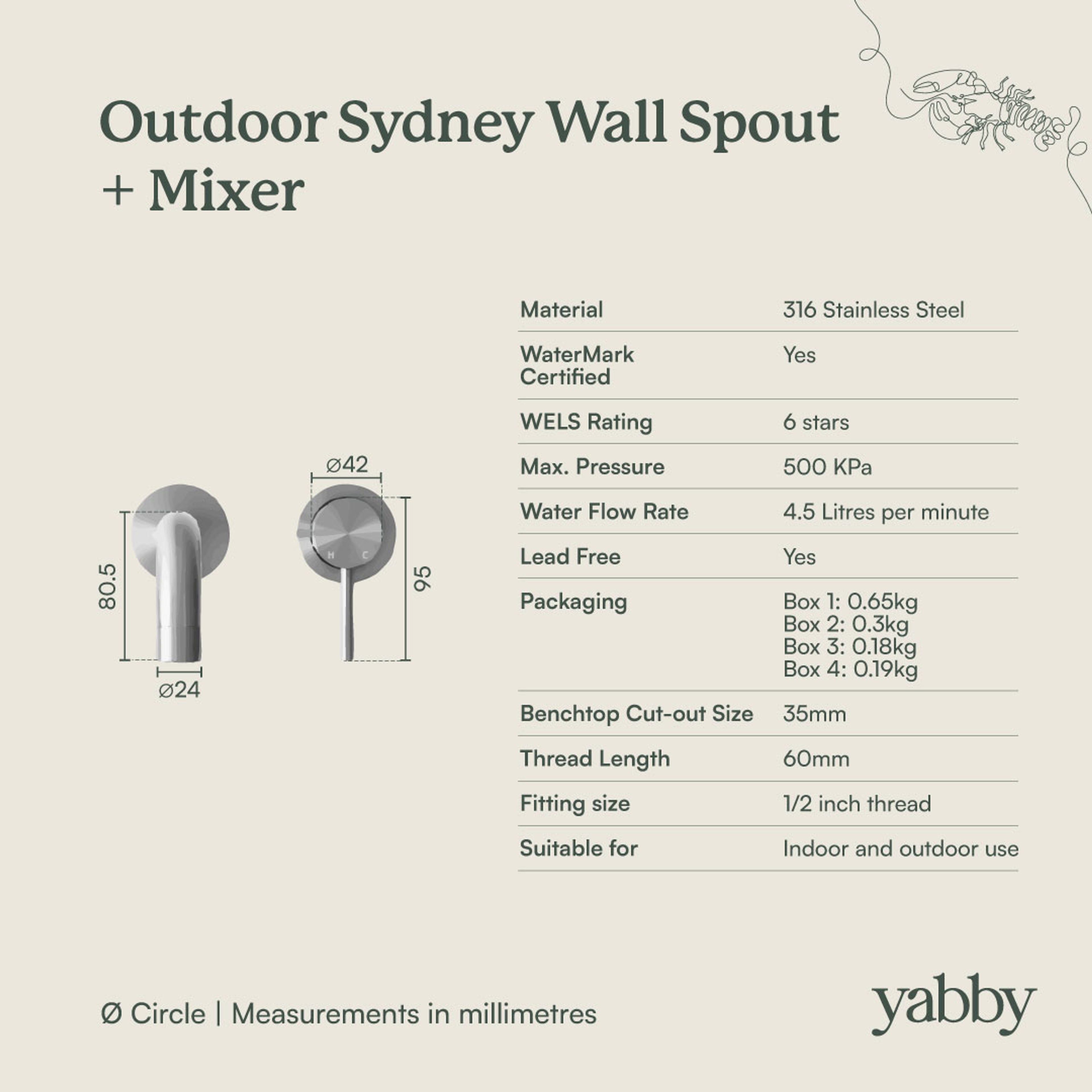 Outdoor Sydney Wall Spout + Mixer Stainless Steel